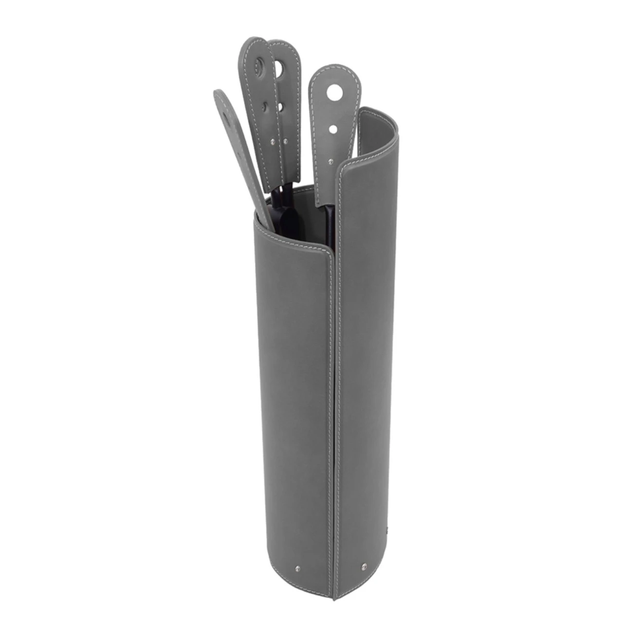 Set bestehend aus Kaminbesteckhalter aus Leder mod. „Ajela“ und 4-teiliges Kaminbesteck mit Ledergriff mod. „Lara“