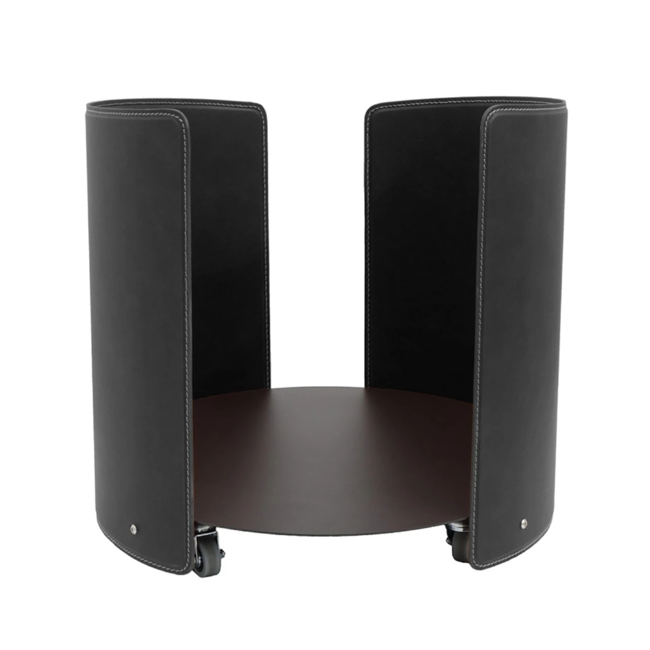 Der von Limac Design entworfene ALEYA ist ein Kaminholzhalter aus Stahl und regeneriertem Leder, ausgestattet mit 4 Gummirädern. Das patentierte Design wird in Italien von Handwerksmeistern für Sie auf Bestellung hergestellt.