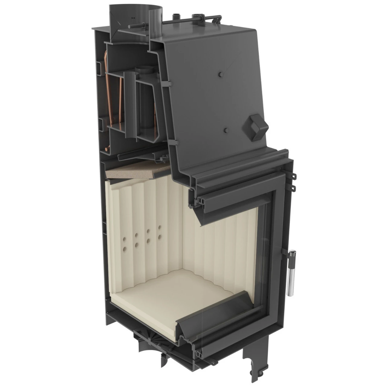Der wasserführender Kamineinsatz Kratki Aquario O16 überzeugt nicht nur durch seinen hohen Wirkungsgrad sondern ist auch elegant und solide in seiner Bauweise, wie auch in seiner Technik. Zum einen besitzt dieser einen hohen Wirkungsgrad, zum anderen sind die großen Frontscheiben bis zu 800°C hitzebeständig. Bei Scheitholz bringt dieser wasserführende Heizeinsatz eine Effizienz von bis zu 86%.