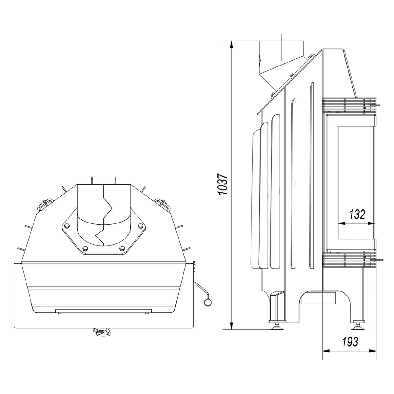 Modell: Kratki Blanka 8 Warmluft-Kamineinsatz mit Panorama 3-seitiger Verglasung