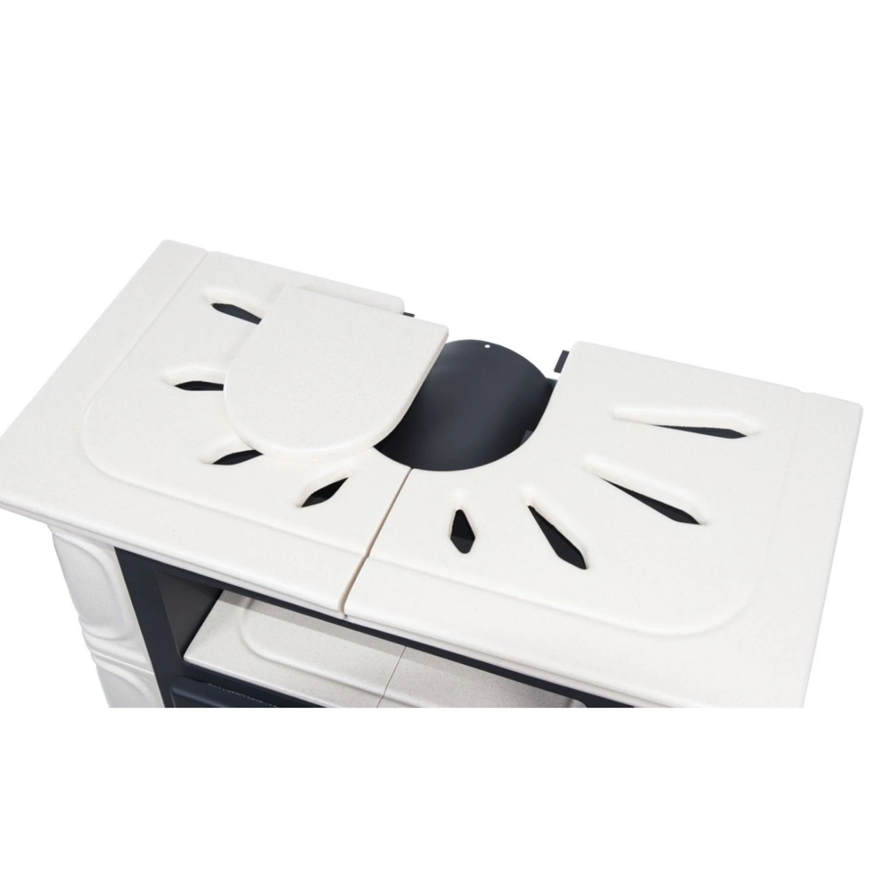 - Abstand von Mitte des Rauchstutzens bis zur Hinterkante des Ofens: 12,1 cm;