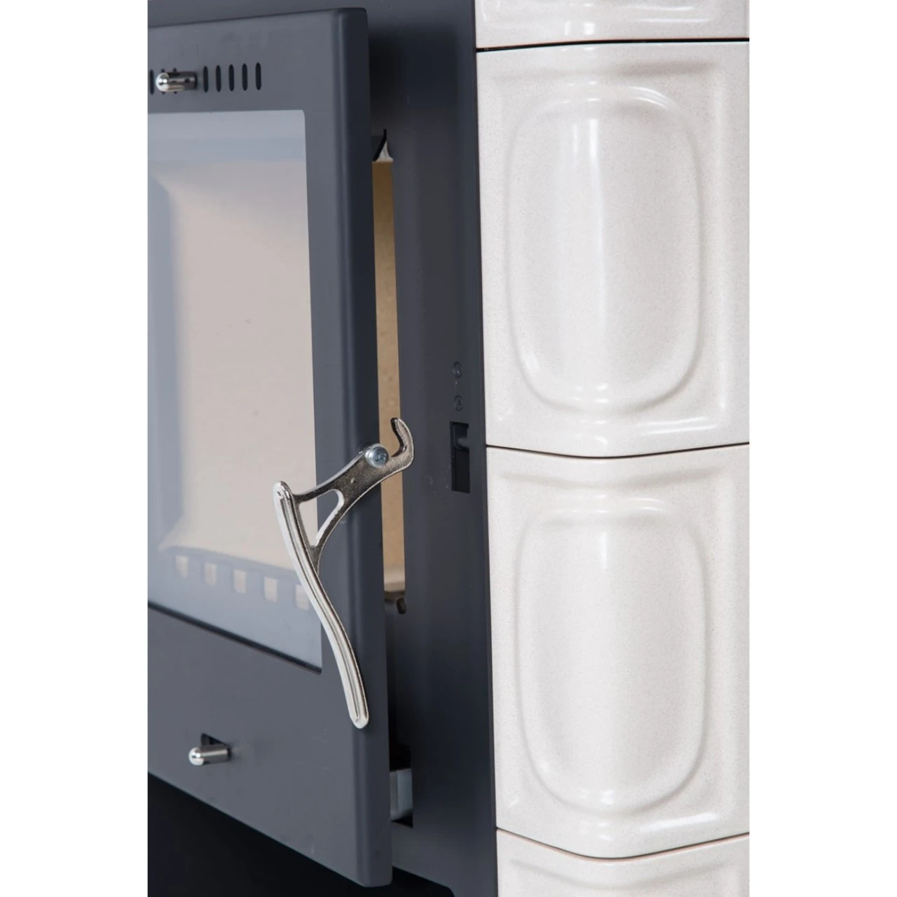 Der Kachel-Kaminofen Borgholm ist mit hochwertigen Handgefertigten Kacheln verkleidet. Der Feuerraum ist mit dicken Schamottsteinen ausgestattet, welche eine optimale Wärmeentfaltung unterstützen.