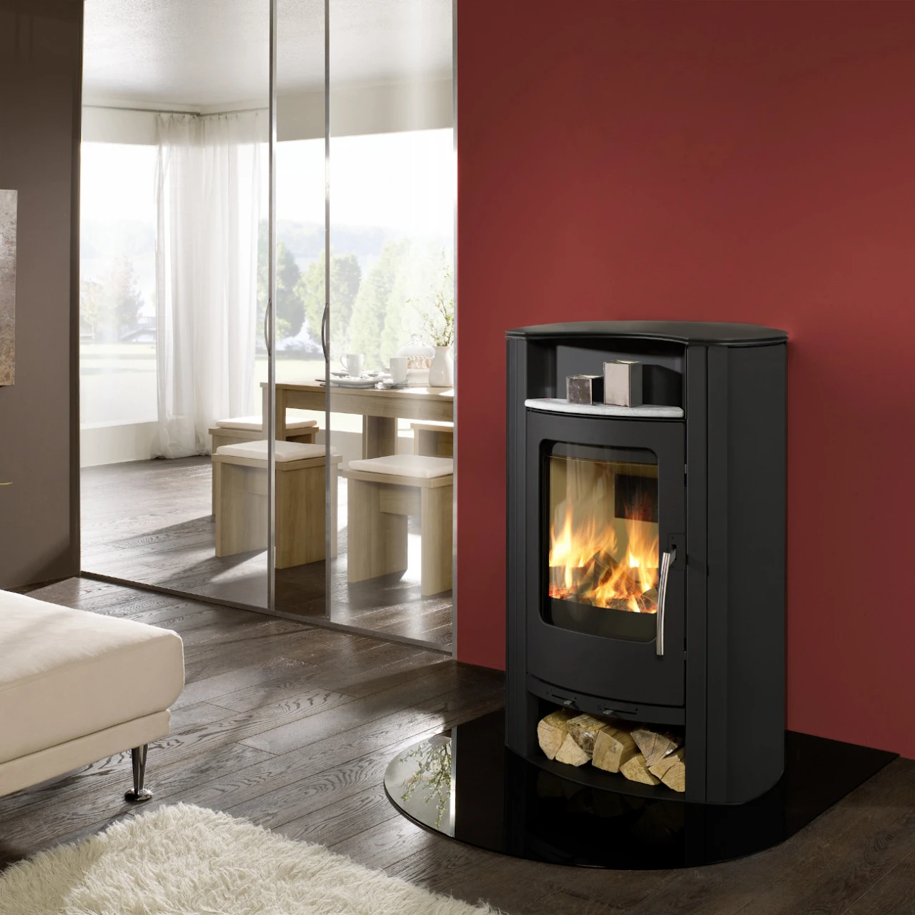 - Bewährte Scheibenspülung – Ein Luftvorhang hält Ihre Kaminofenscheibe schön sauber.