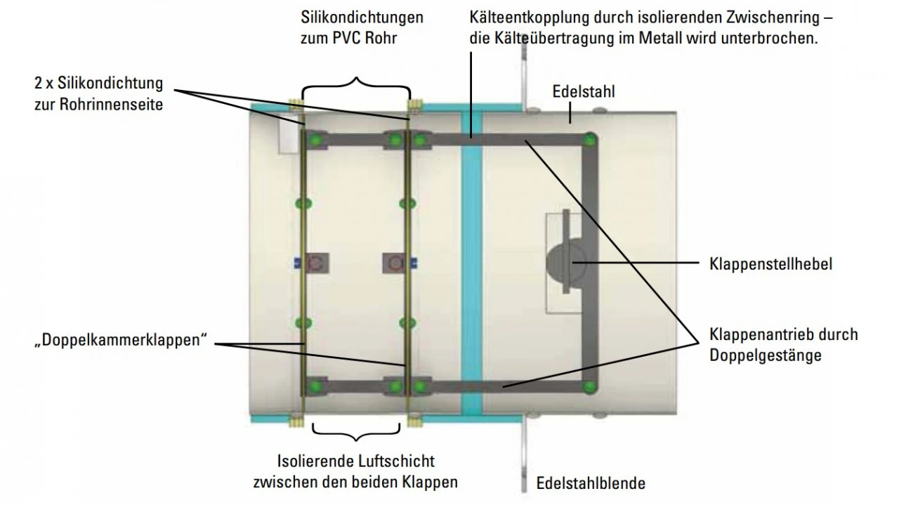 Kälteentkopplung des Doppelklappenmoduls mittels eingesetztem Kunststoffring