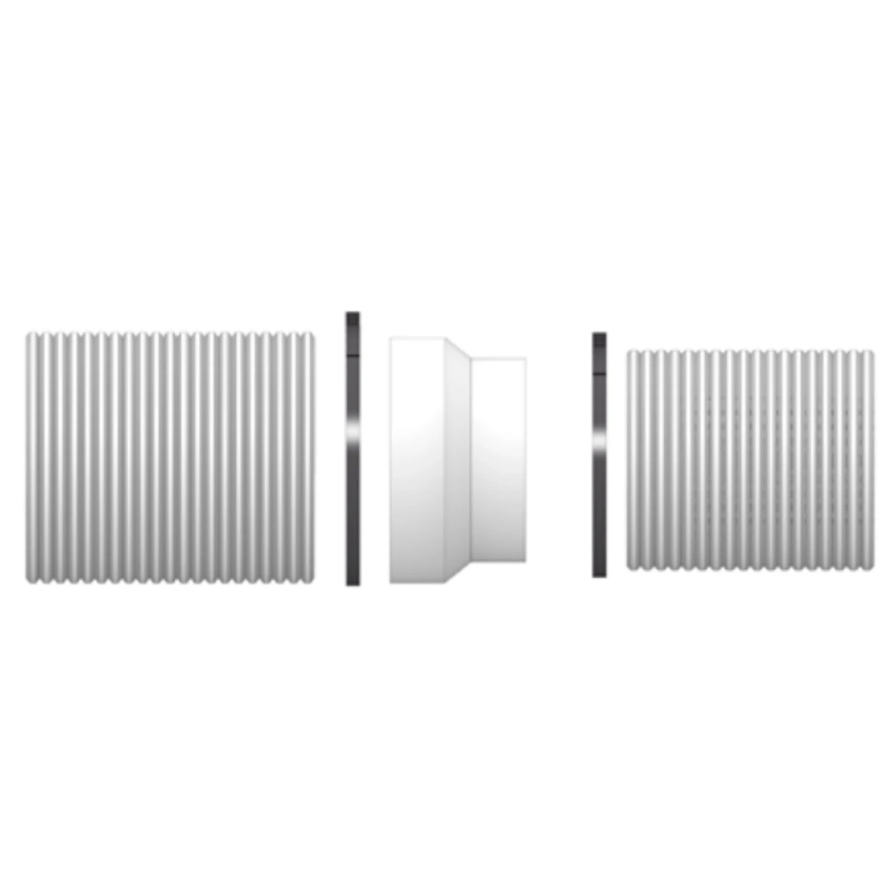 Die Reduzierung für Aluflexrohre aus verzinktem Stahl sorgt hier für einen problemlosen Übergang verschiedener Flexrohrgrößen.