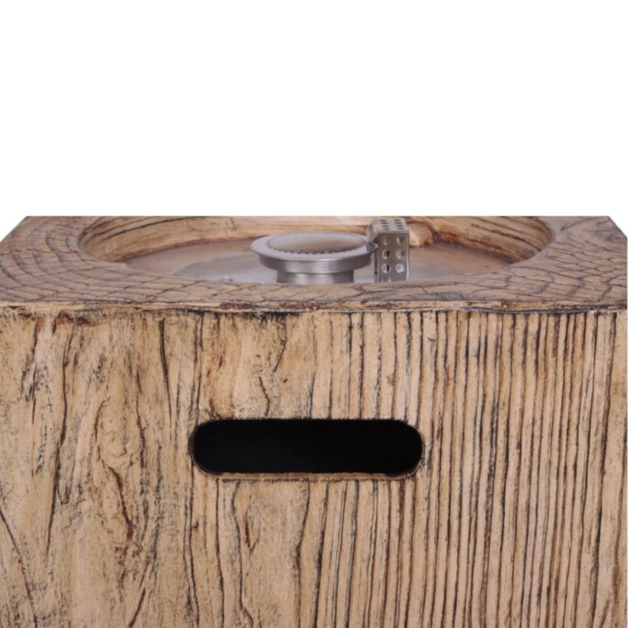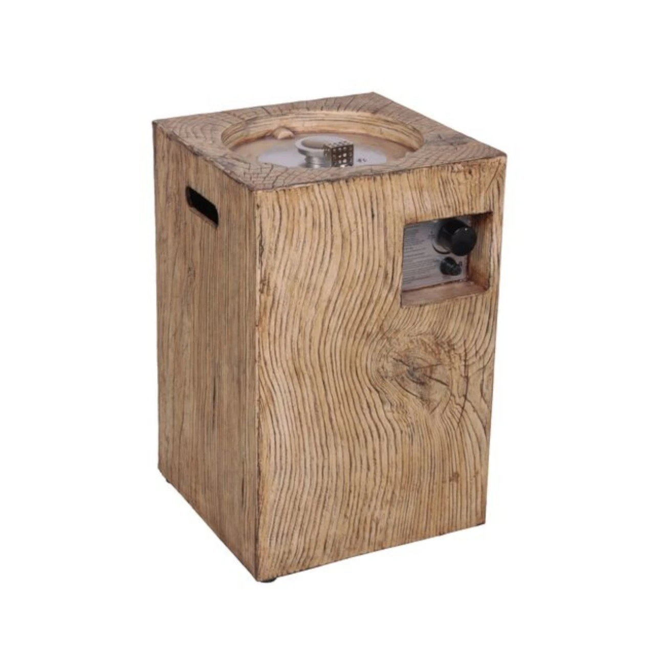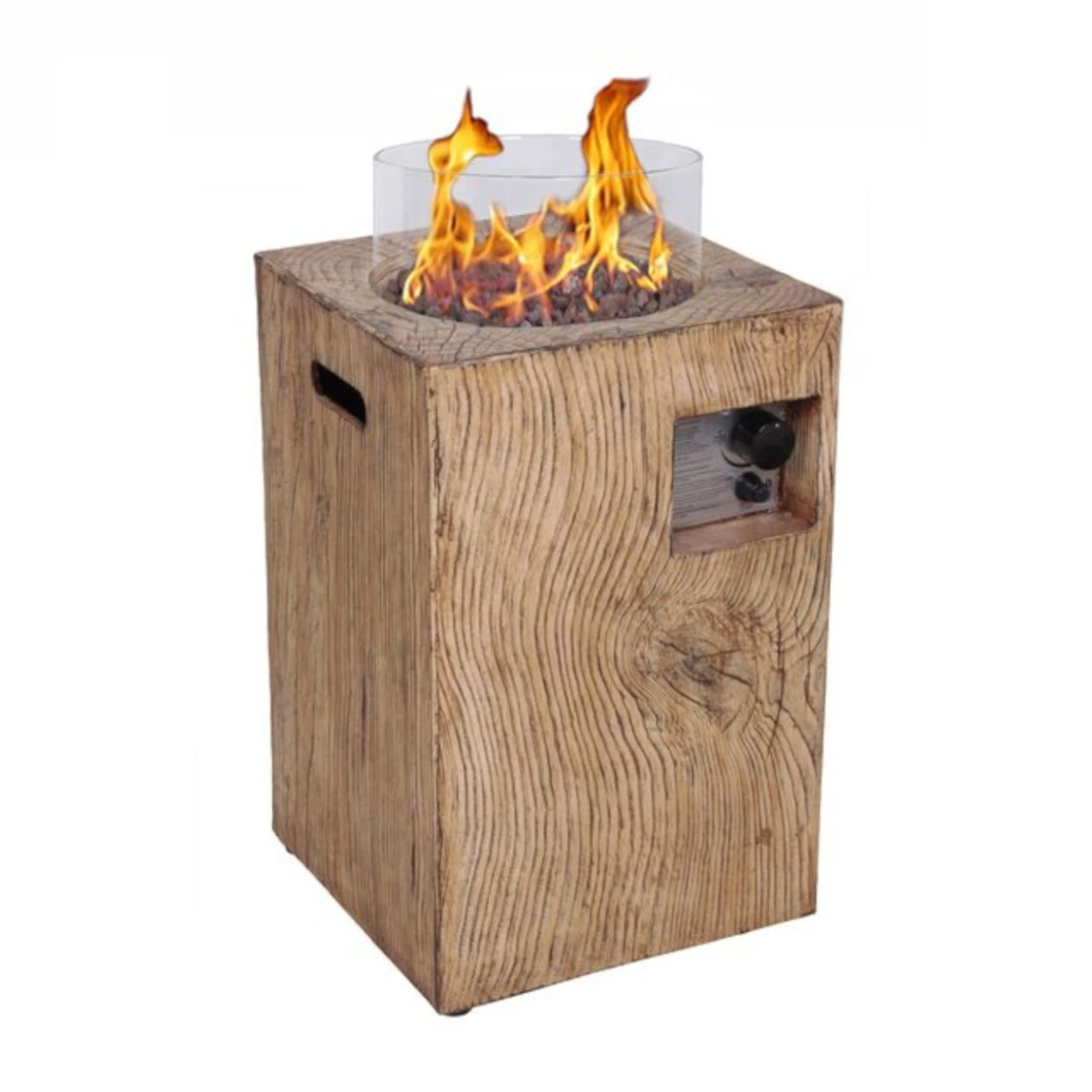 Column 40 Outdoor-Gaskamin in Holzoptik. Lieferung komplett mit sämtlichem Zubehör. Der Column 40 Wood mit fühlbarer Holzstruktur ist ein attraktiver Außenkamin oder Patio Kamin, der für den Garten oder den Balkon geeignet ist.