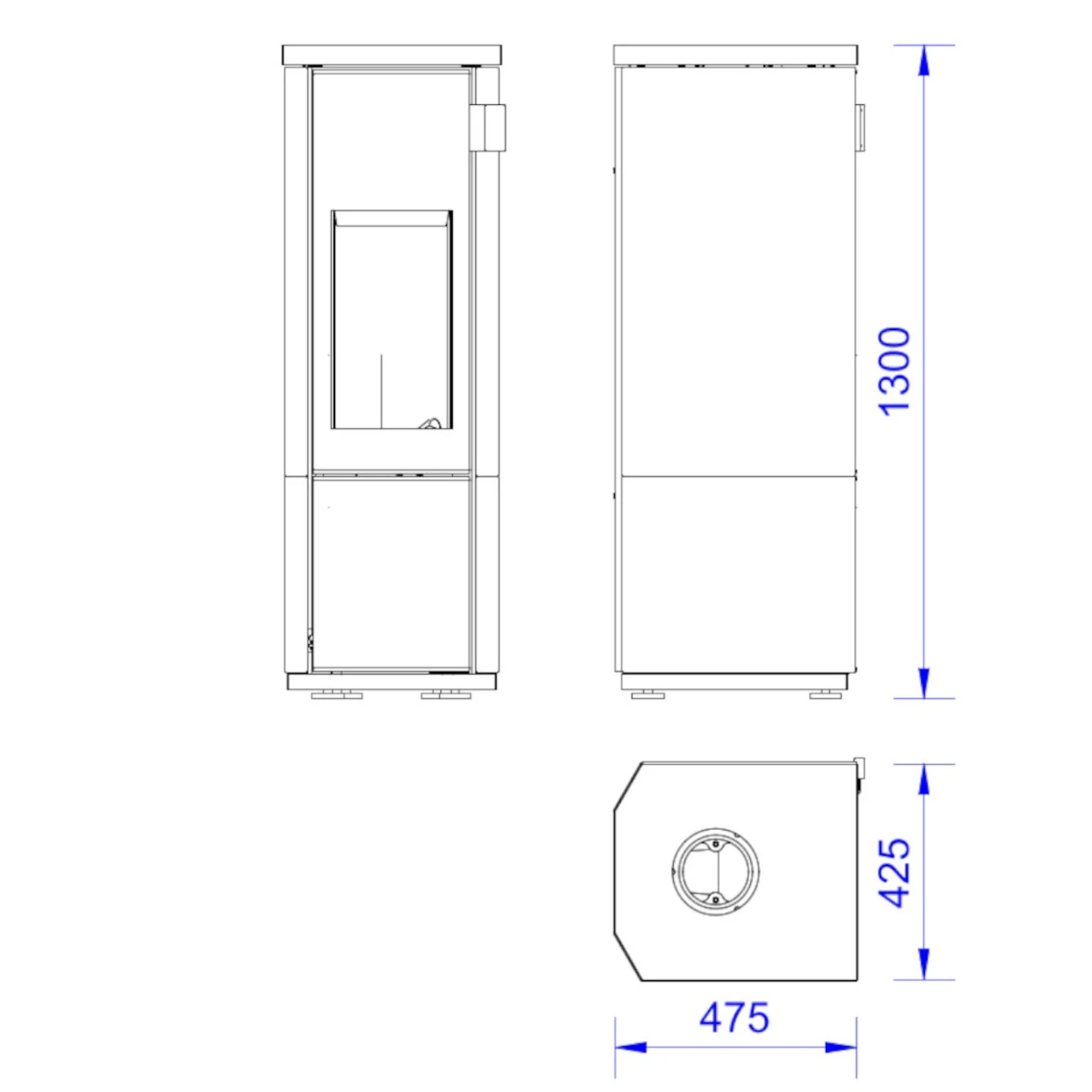 - Abstand von Mitte des Rauchstutzens bis zur Hinterkante des Ofens: 19,9 cm