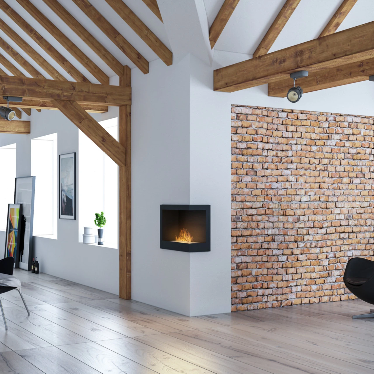 Das Eckmodell von SIMPLE fire, CORNER P600, mit offener rechter Seite, ist bestens zum Einbau in einer Nische geeignet. Die Konstruktion des Ethanolkamins gewährleistet eine einfache Montage und eine effektive Ausarbeitung, ohne dass der Rand der Aussparung in der Wand ideal bearbeitet werden muss. Der Ethanolkamin ist mit einer Glasscheibe erhältlich (lange + kurze Seite), welche die Sicherheit des Ethanolkamins noch einmal erhöht.