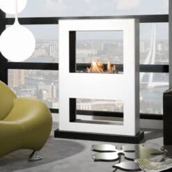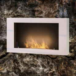 Nero Bioethanol Kamin Naturstein Weiß Mit Steindekor Und Medaillon