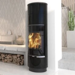 Der DELIA KERAMIK Kaminofen mit schwarzen Kacheln hat eine große gebogene Sichtscheibe und bringt, Dank der modernen Feuerung, Ihnen die Freude am Kaminfeuer ins Haus. Die Design Ganzglastür ist mit einer 2-Fach Verriegelung ausgestattet und der dezente Griff unterhalb der Brennkammer ist ein echtes Highlight, dieser wird abgerundet durch die Handgefertigten Kacheln. Der hochwertige Brennraum ist mit einer tiefem Gussmulde und Vermiculite ausgestattet.