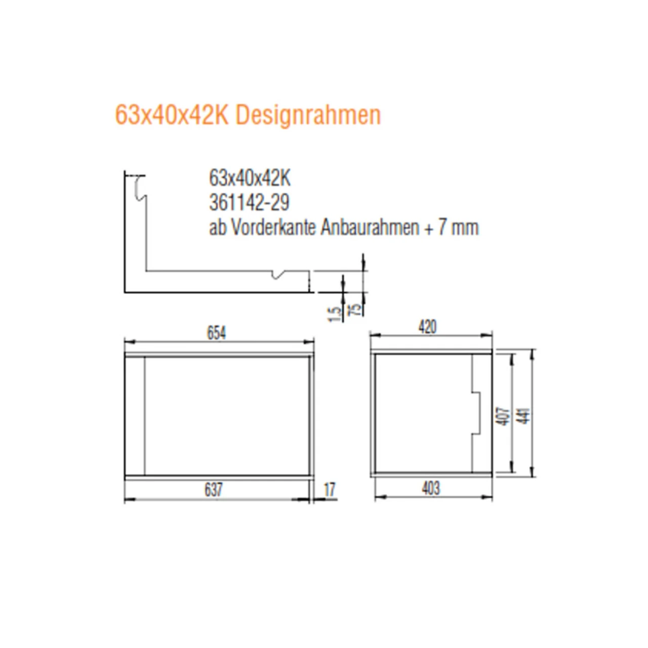 Weitere Maße finden Sie bei den Bildern und im Downloadbereich im Datenblatt (Achtung! Zeichnungen inkl. Konvektionsmantel und Designrahmen)