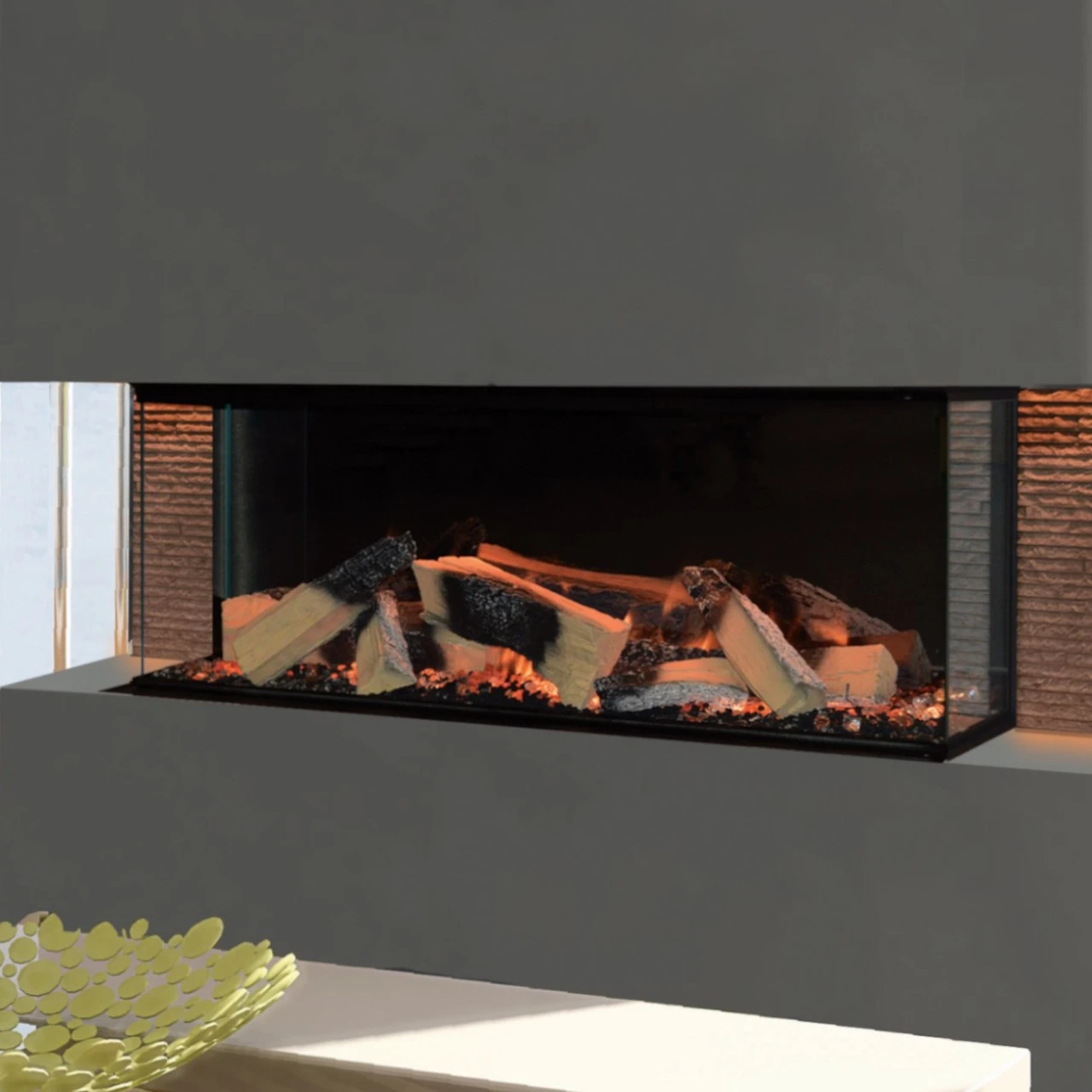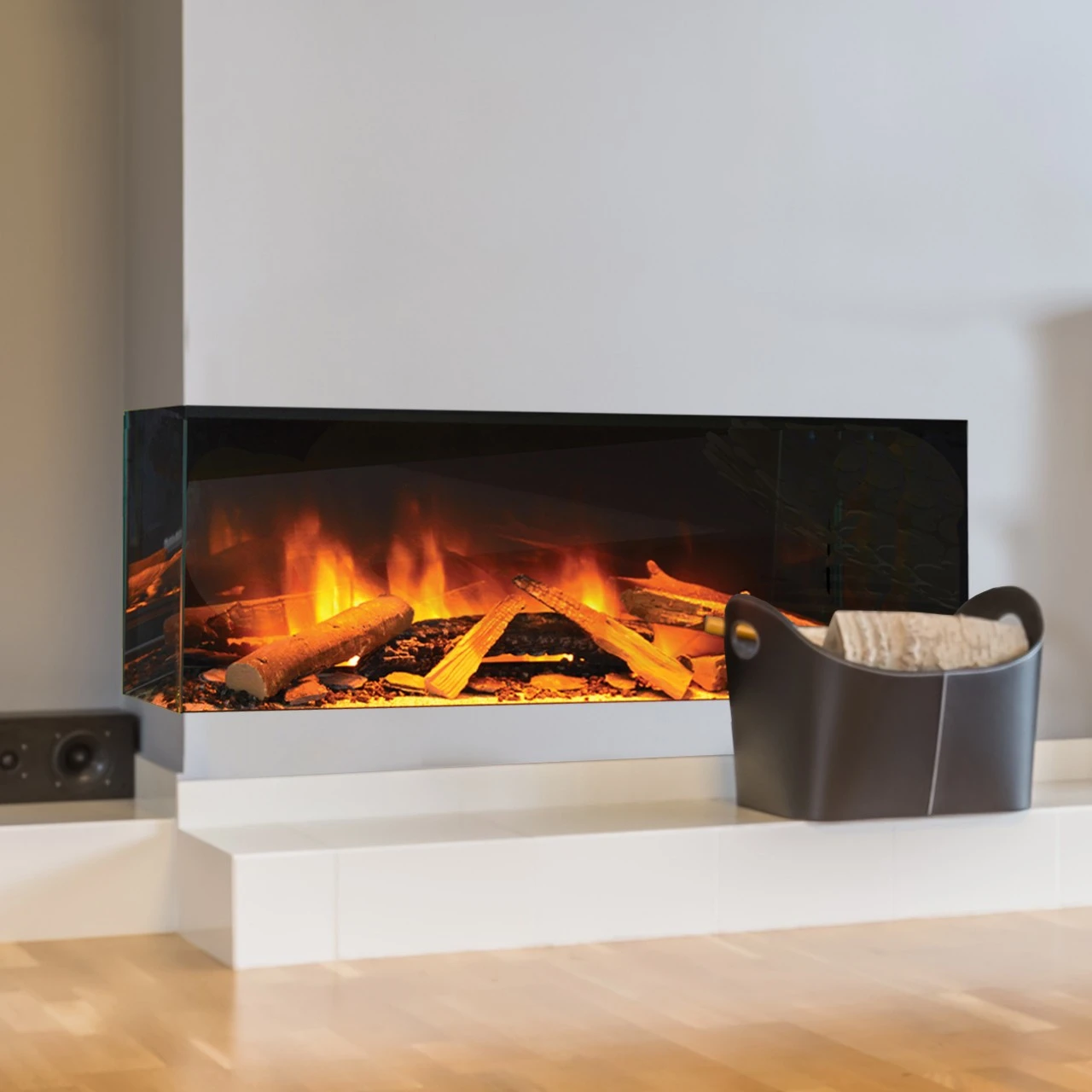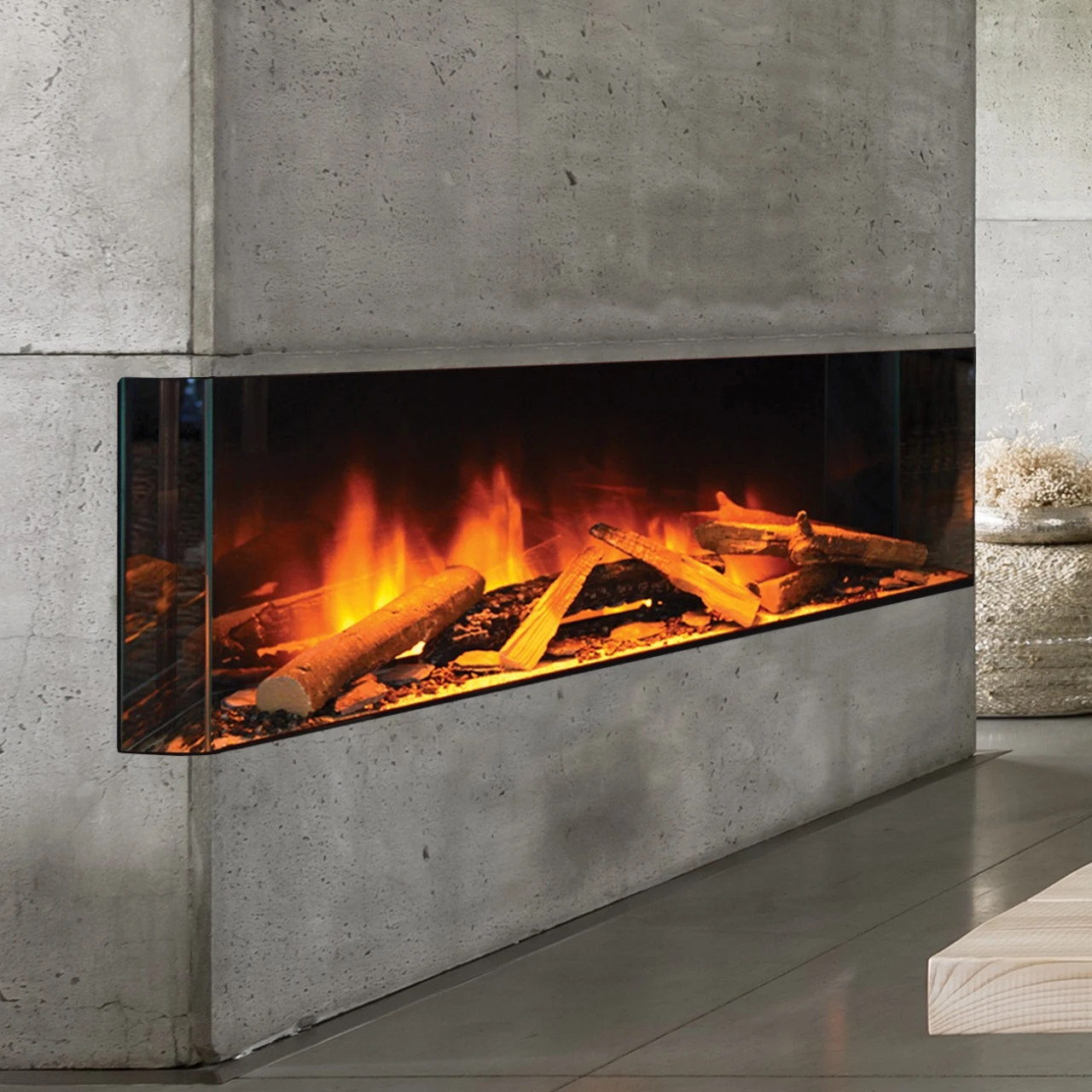 Das entspiegelte Glas sorgt für eine besondere Holzfeueroptik, als ob man vor einem offenen Kamin sitzt. Zusammen mit dem realistischen Flammenbild und der eingebauten Heizung kommt selbst für Holzfeuer-Romantiker das echte Kamin-Gefühl in Ihr Haus.