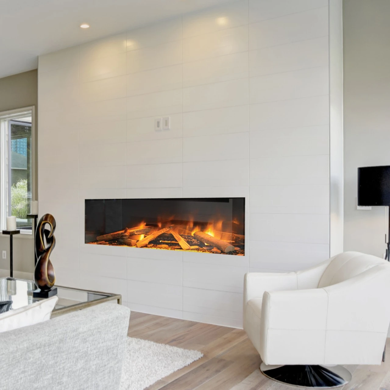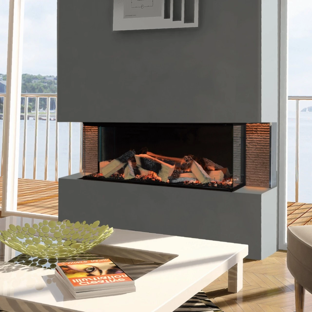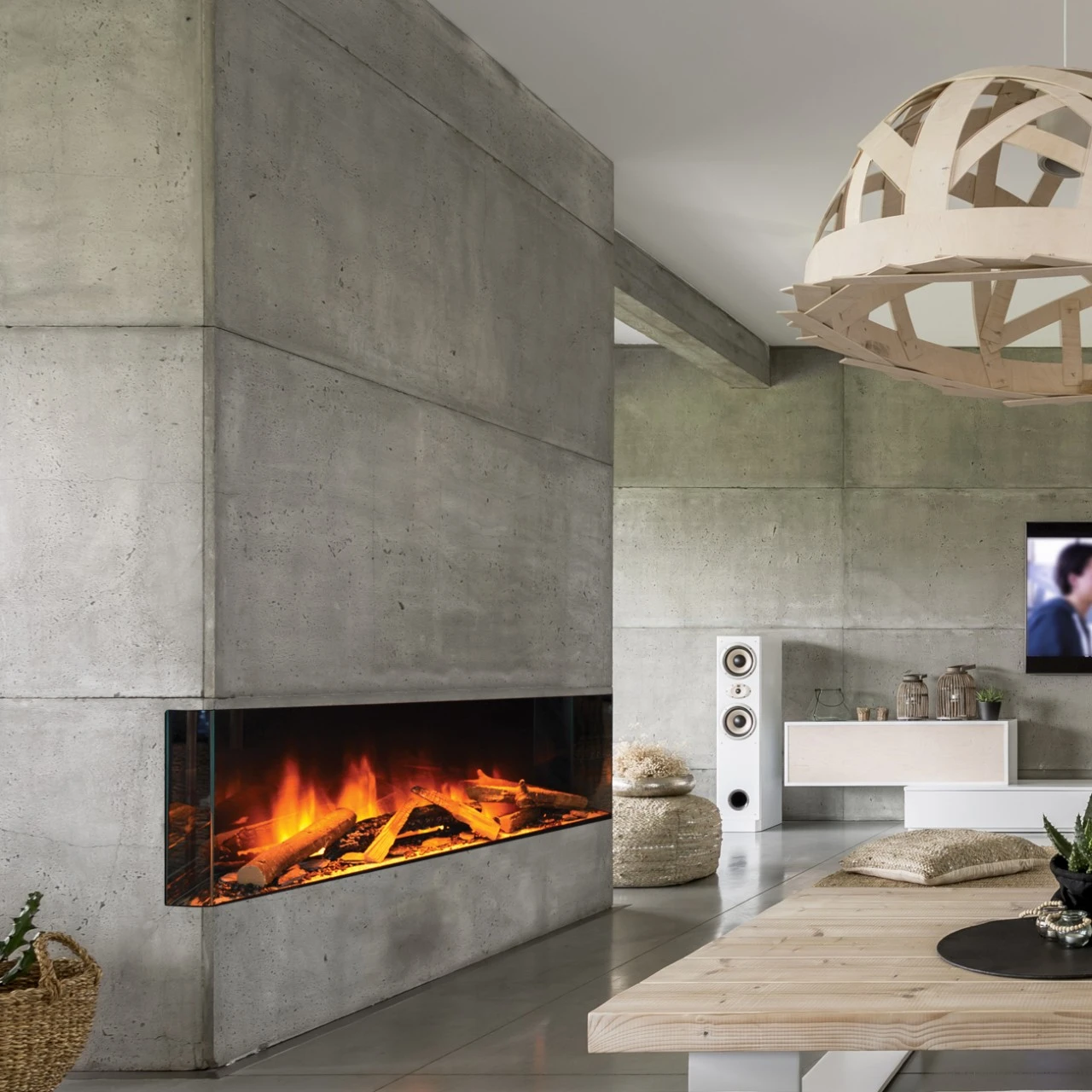 Das entspiegelte Glas sorgt für eine besondere Holzfeueroptik, als ob man vor einem offenen Kamin sitzt. Zusammen mit dem realistischen Flammenbild und der eingebauten Heizung kommt selbst für Holzfeuer-Romantiker das echte Kamin-Gefühl in Ihr Haus.