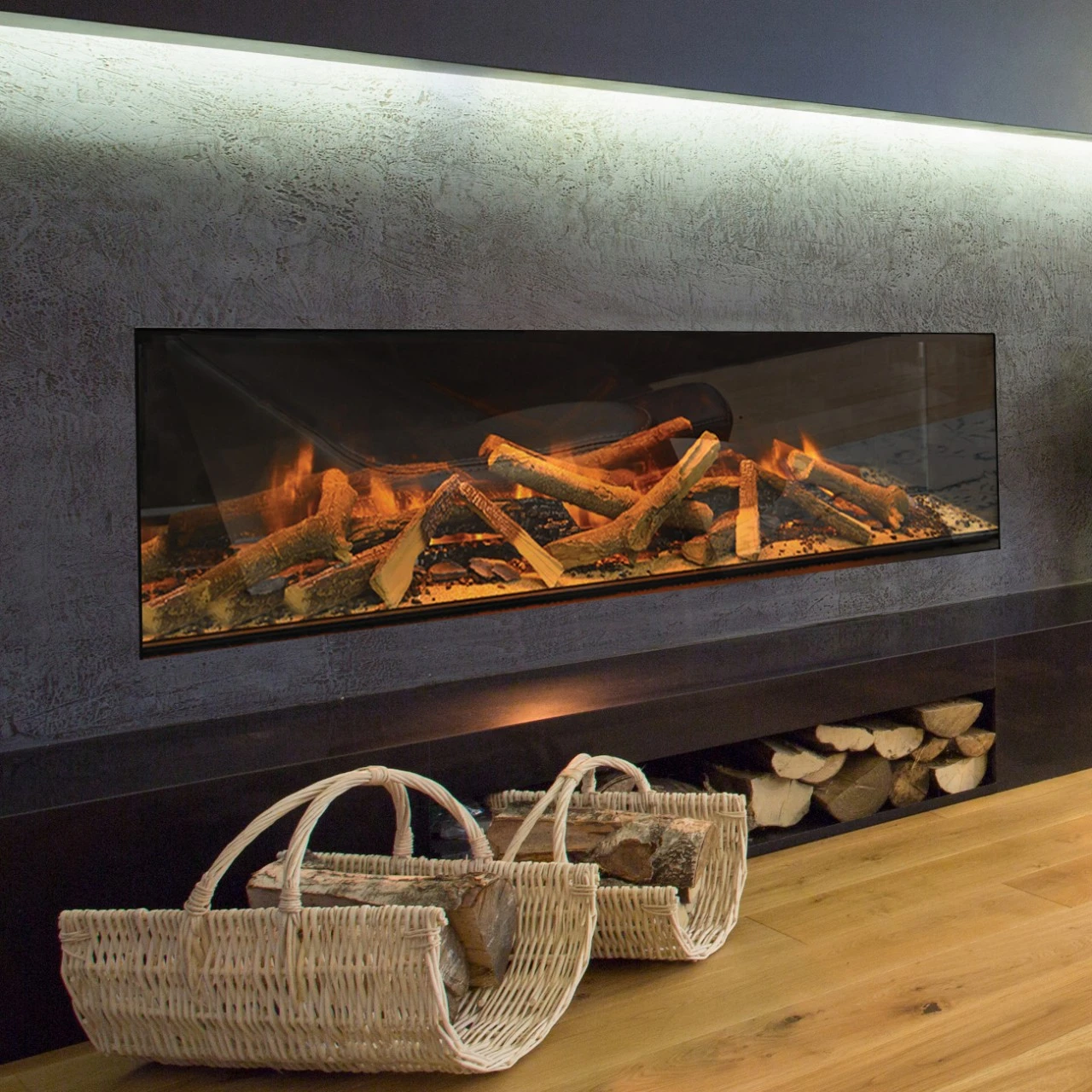 Das entspiegelte Glas sorgt für eine besondere Holzfeueroptik, als ob man vor einem offenen Kamin sitzt. Zusammen mit dem realistischen Flammenbild und der eingebauten Heizung kommt selbst für Holzfeuer-Romantiker das echte Kamin-Gefühl in Ihr Haus.
