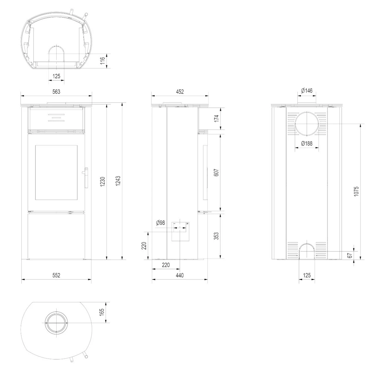 - Durchmesser Anschluss externe Luftzufuhr: 100 mm;