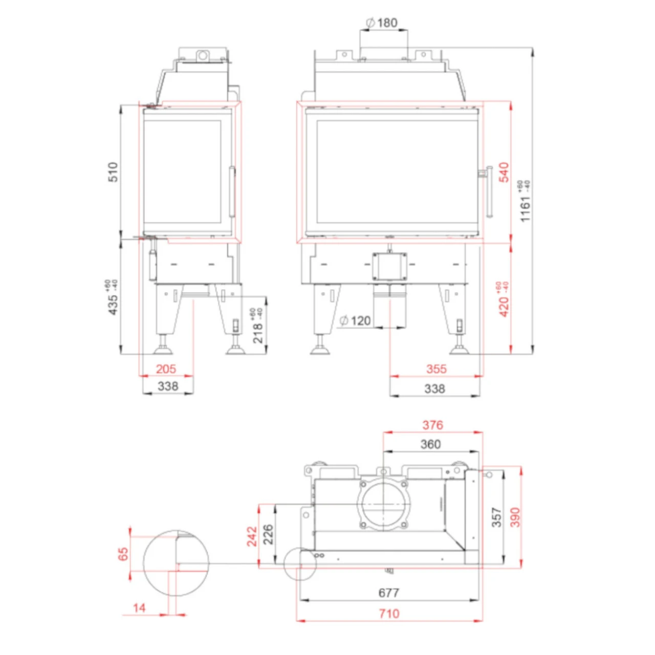 - Besonderheiten Kamin: Anschluss für Externe Luftzufuhr/ Frischluftzufuhr; Höhenverstellbare Füße;