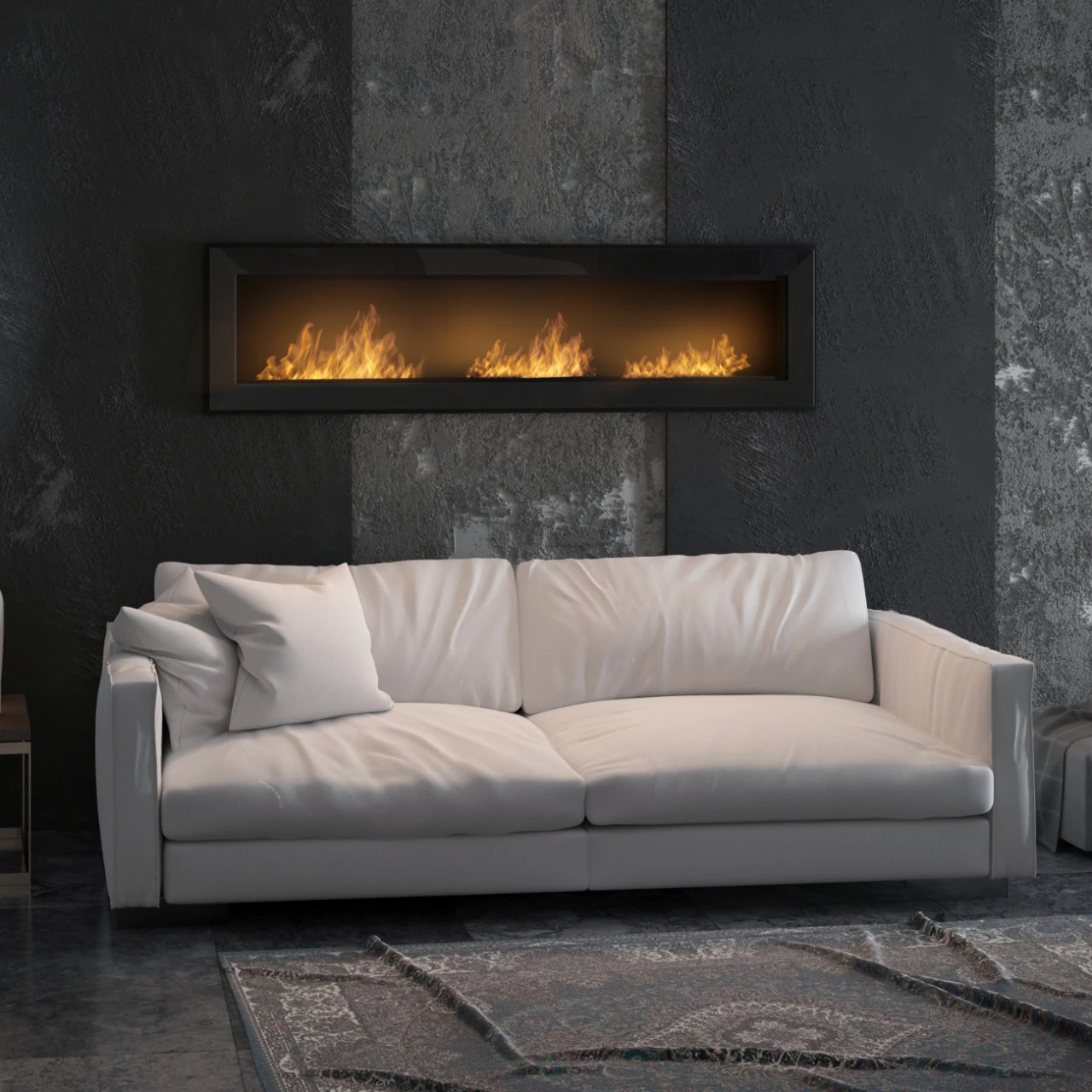 Der Ethanolkamin von SIMPLE fire, FRAME 1800, eignet sich bestens zum Einbau in einer Nische oder zum befestigen an einer Wand. Die Konstruktion des Ethanolkamins gewährleistet eine einfache Montage und eine effektive Ausarbeitung, ohne dass der Rand der Aussparung in der Wand ideal bearbeitet werden muss. Der Ethanolkamin ist mit einer Glasscheibe erhältlich, welche die Sicherheit des Ethanolkamins noch einmal erhöht. Der FRAME 1800 ist erhältlich in 3 unterschiedlichen Farben – Schwarz, Weiß oder Inox (Edelstahl) – mit Schutzglas.
