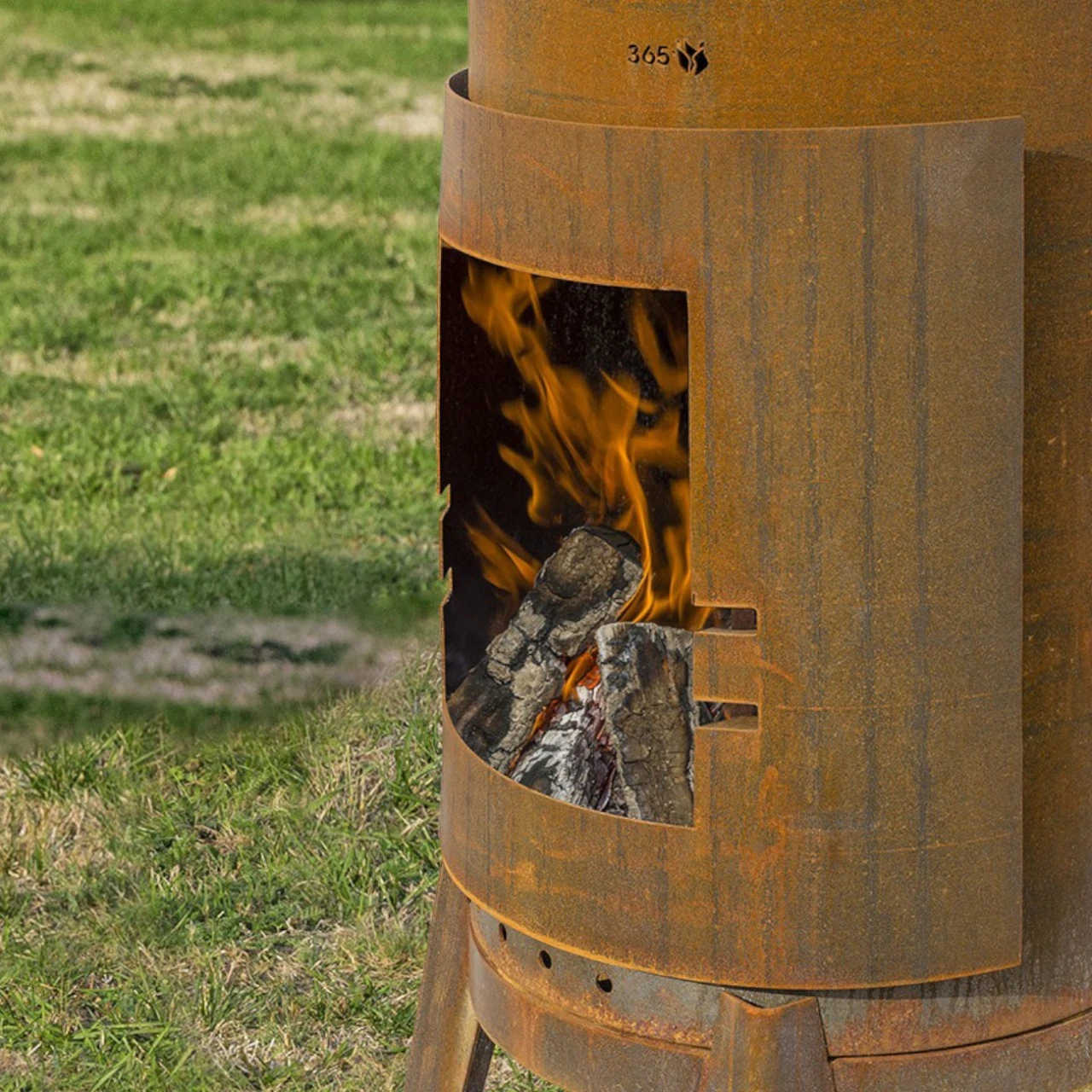 FeuerCampus365 Gartenkamin Feuerschale RAGNAR – Robuster Outdoor-Kamin aus Cortenstahl