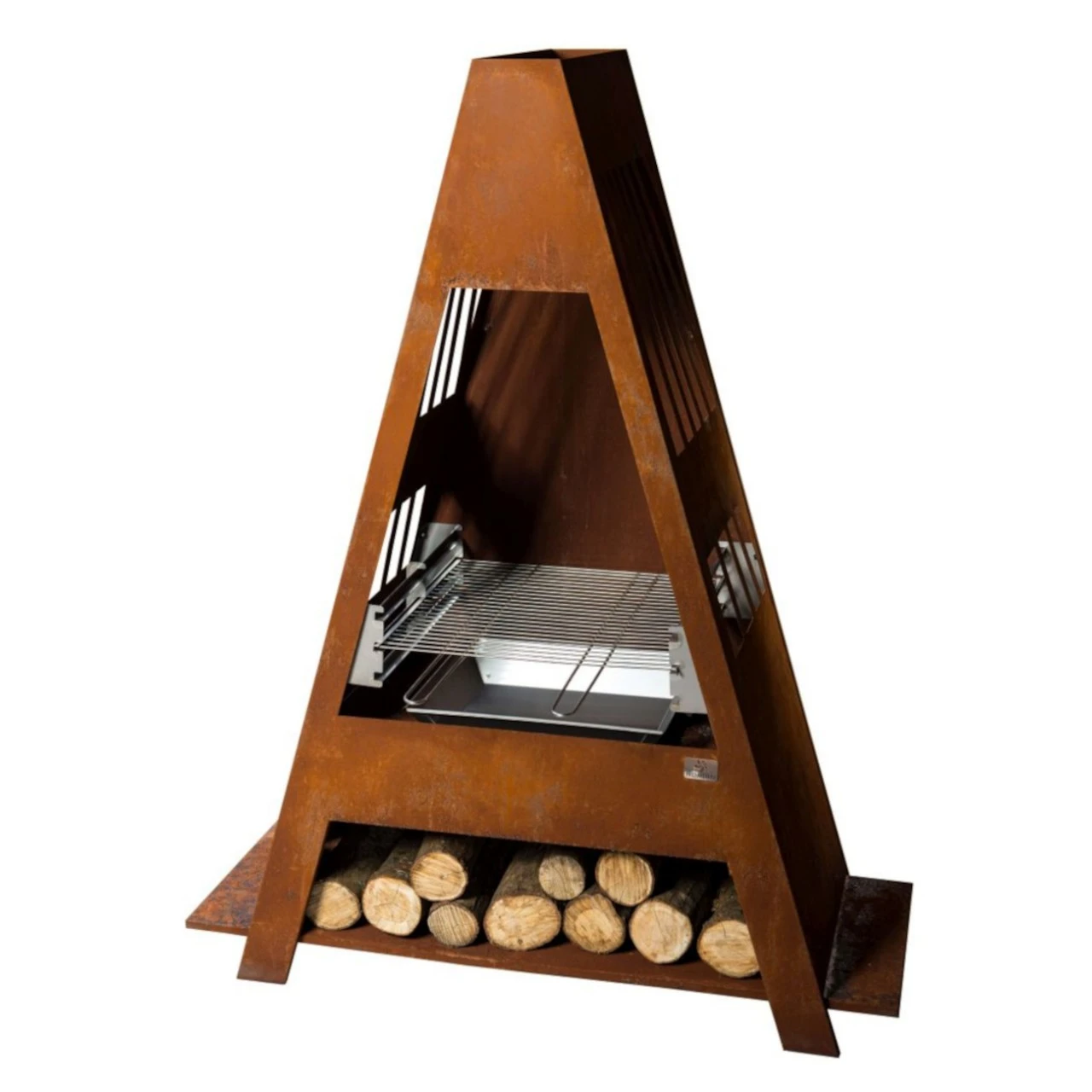 Der Nomlilo Gartenkamin BLF-02 im kantigen Design ist ein optischer Hingucker in Ihrem Garten oder auf Ihrer Terrasse, der praktischerweise auch noch als Grill verwendet werden kann.