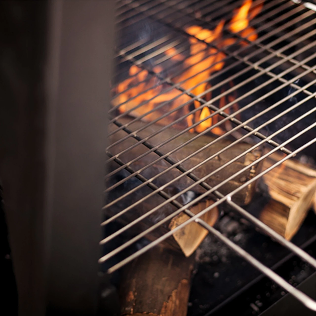 Das mitgelieferte Feuerrost ist sowohl für Holzkohle als auch für kleine Holzscheite geeignet und leicht zu reinigen. Die Holzscheite können Sie im dafür vorgesehenen Holzfach aufbewahren.