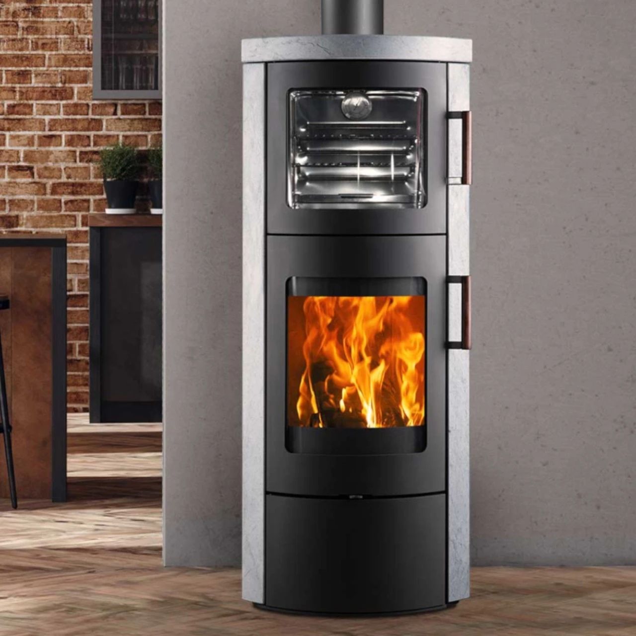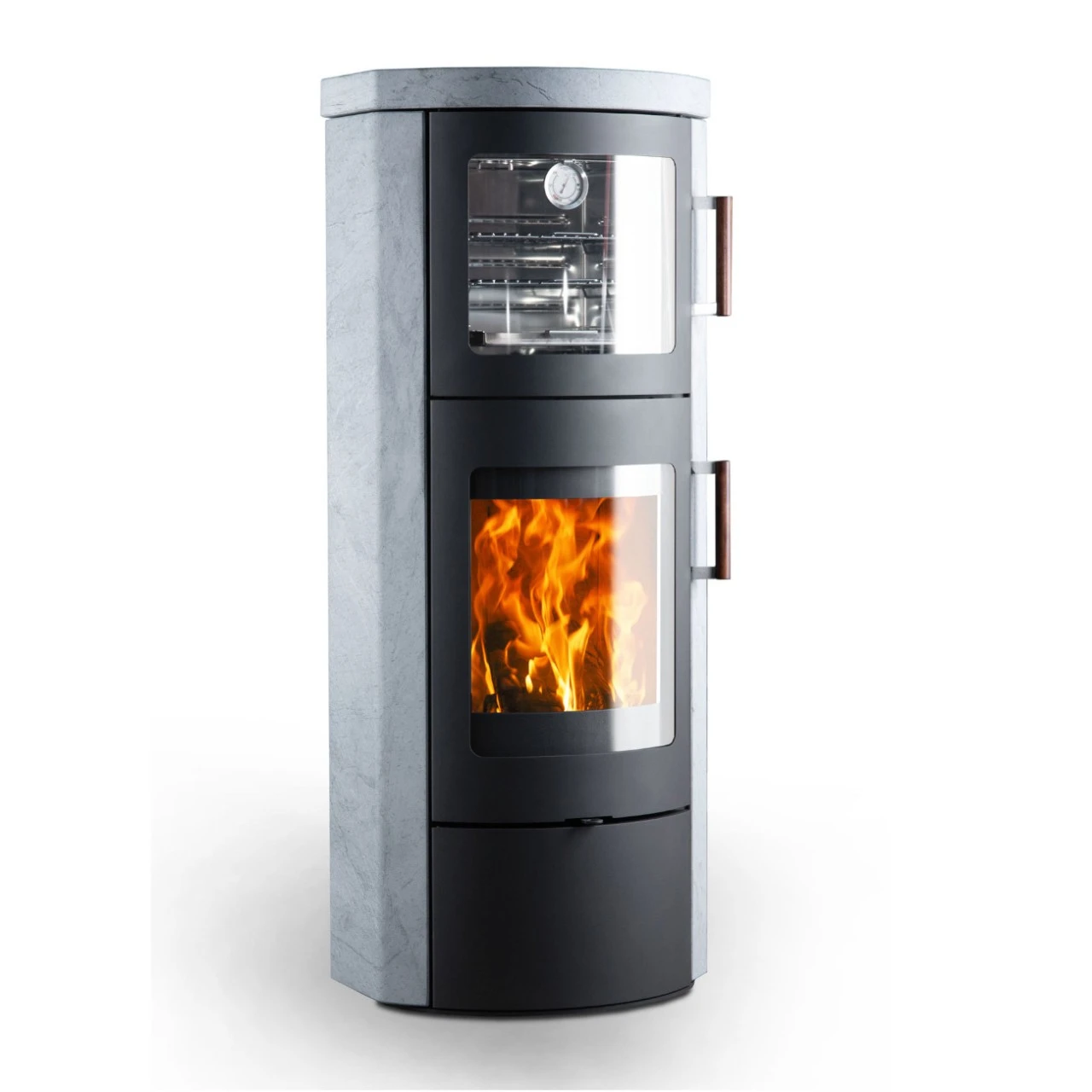 - Backfach und Feuerraum- Türgriff aus Holz