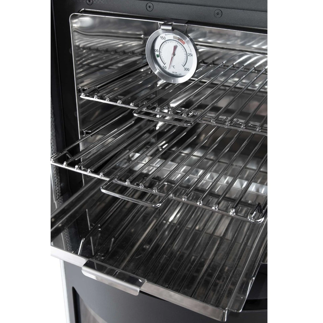 - 1 x Edelstahl-Backschale + 2 x Edelstahl-Backrost + 1 x Thermo- meter