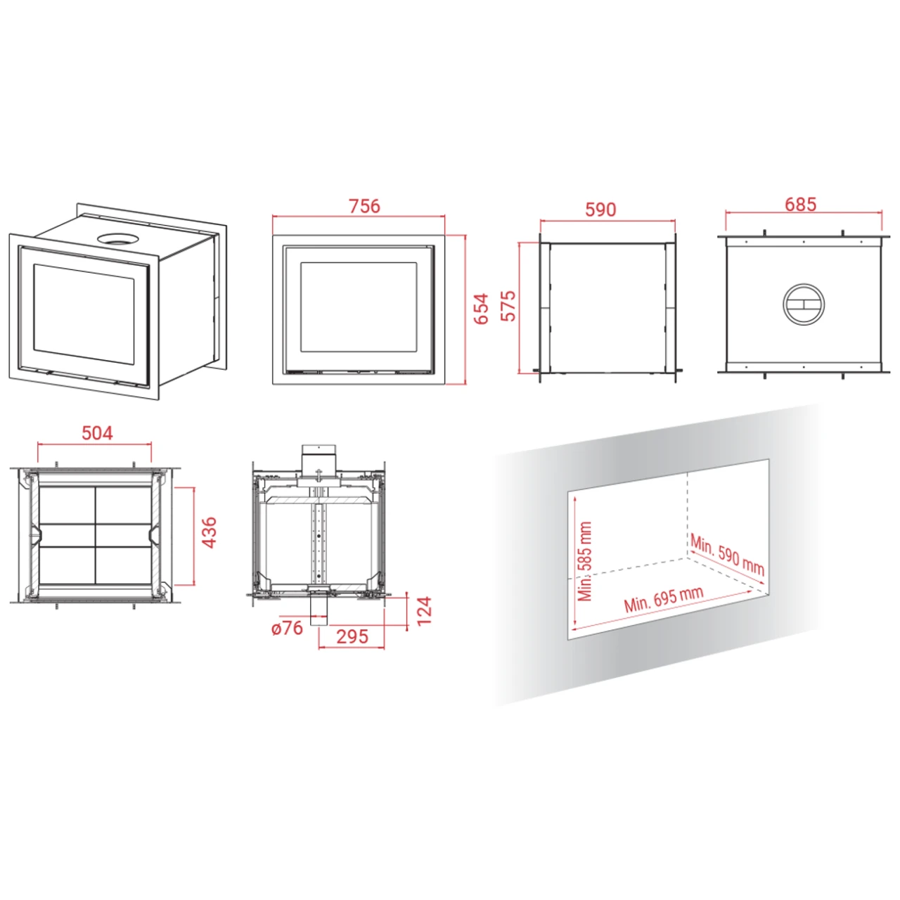Modell: Lotus H570T Tunnel Einbau-Kaminkassette 6kW opt Luftzufuhr