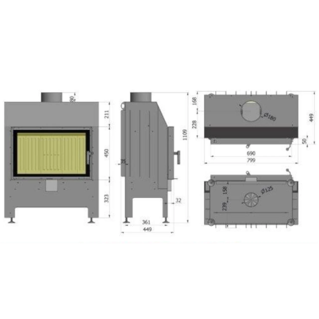 - Durchmesser Anschluss externe Luftzufuhr: 125 mm;