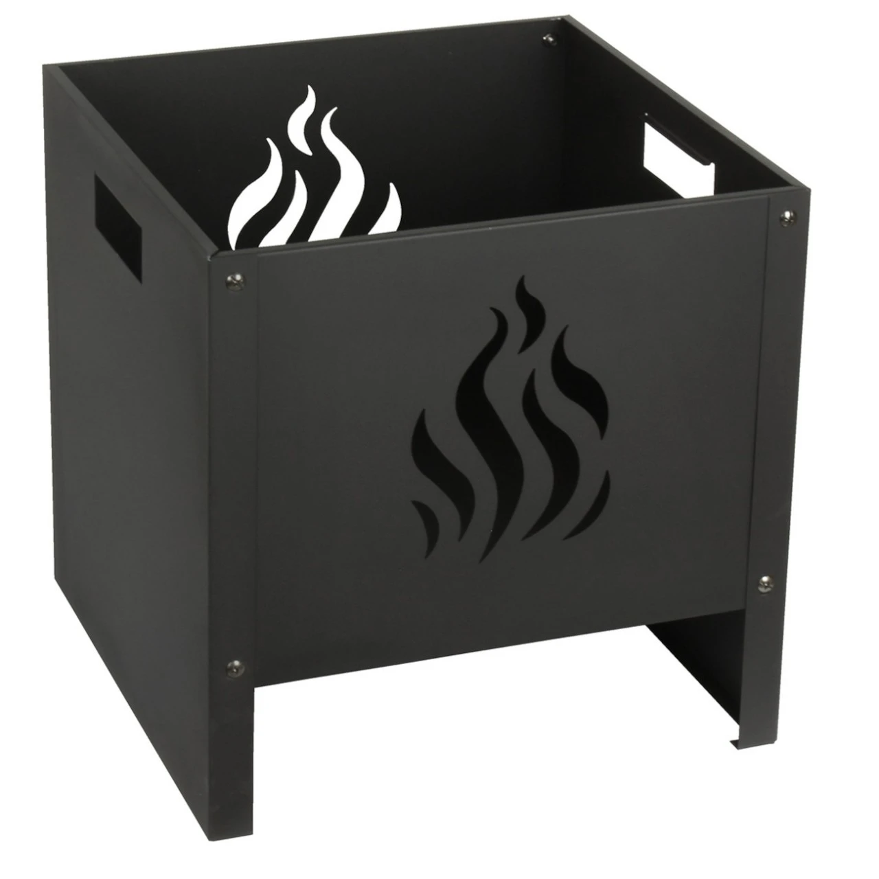 Der HTT Outdoor Feuerkorb „Flamme“ ist ein rechteckiger Außenkamin aus Stahl mit einem dekorativen Licht, das wunderschön im Flammen-Design strahlt.