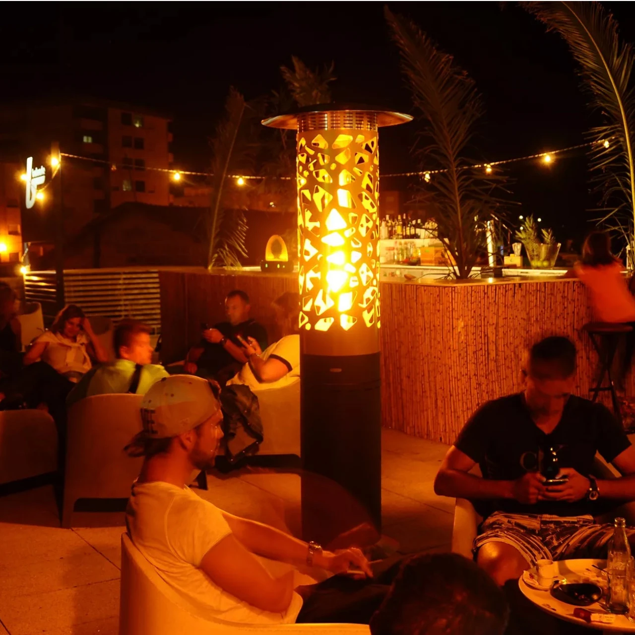 Der Heizpilz Tile-Hyperion zeichnet sich durch Details und sorgfältig gestaltete Geometrie aus, die es zu einem besonderen Stück machen. Die Flamme vibriert anmutig und demonstriert ihre Kraft durch absichtlich geschnittene Räume und Linien.