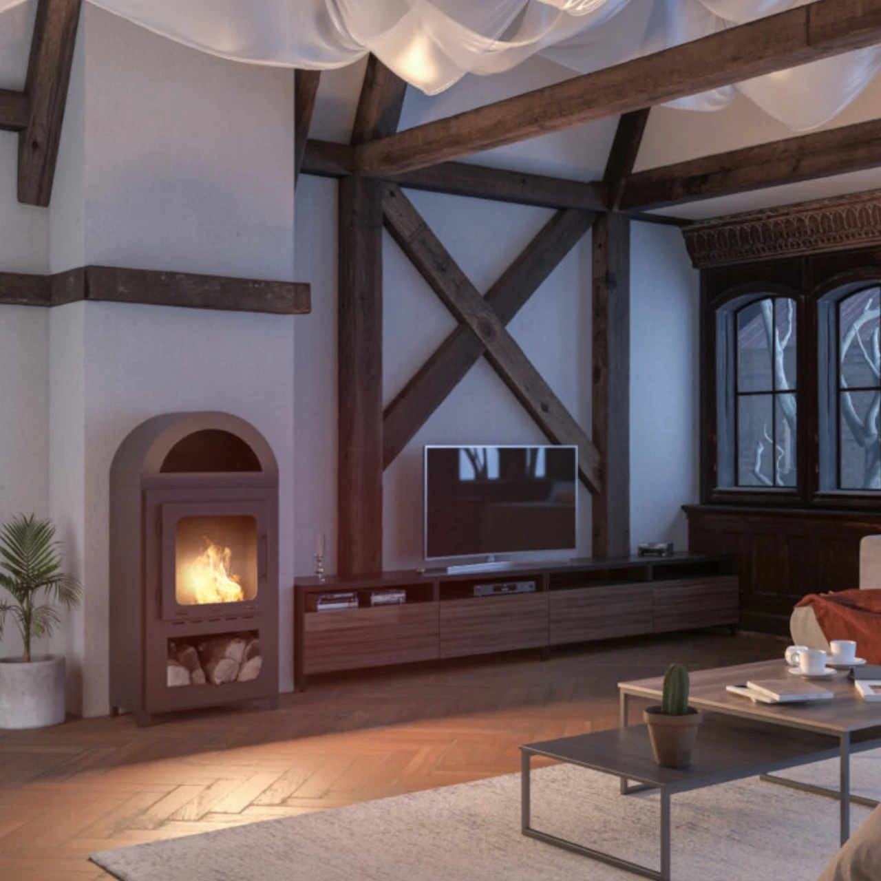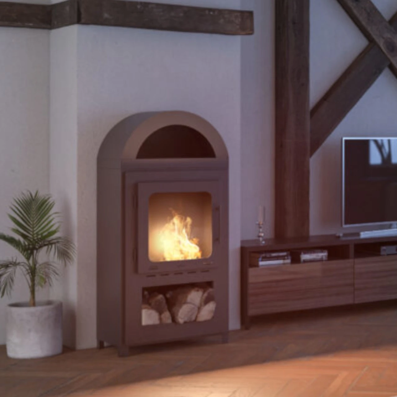 Der INCOZA II – ein klassische Ausführung, der täuschend echt an einen echten Holzkaminofen erinnert. Das Modell hat eine Vollverglasung und Türen zum Öffnen. Der Ethanolkamin benötigt keinen Zugang zu einem Schornstein und sein Design ermöglicht es, 100% der bei der Verbrennung von Biobrennstoff erzeugten Wärme in den Raum zu übertragen.