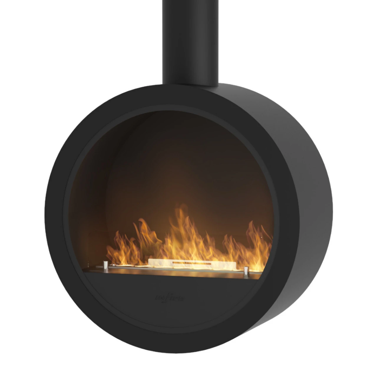 „Der Kamin INCYRCLE ist ein hängender Designer-Kamin, der an die Decke montiert wird. Seine Form fügt sich perfekt in den Innenraum mit modernem Charakter oder im Loft-Stil ein.“