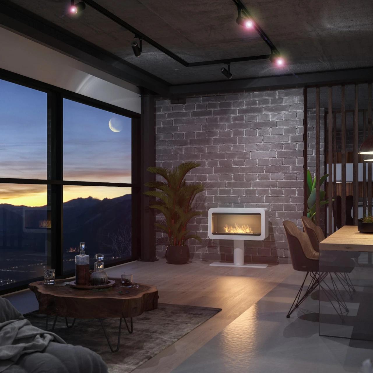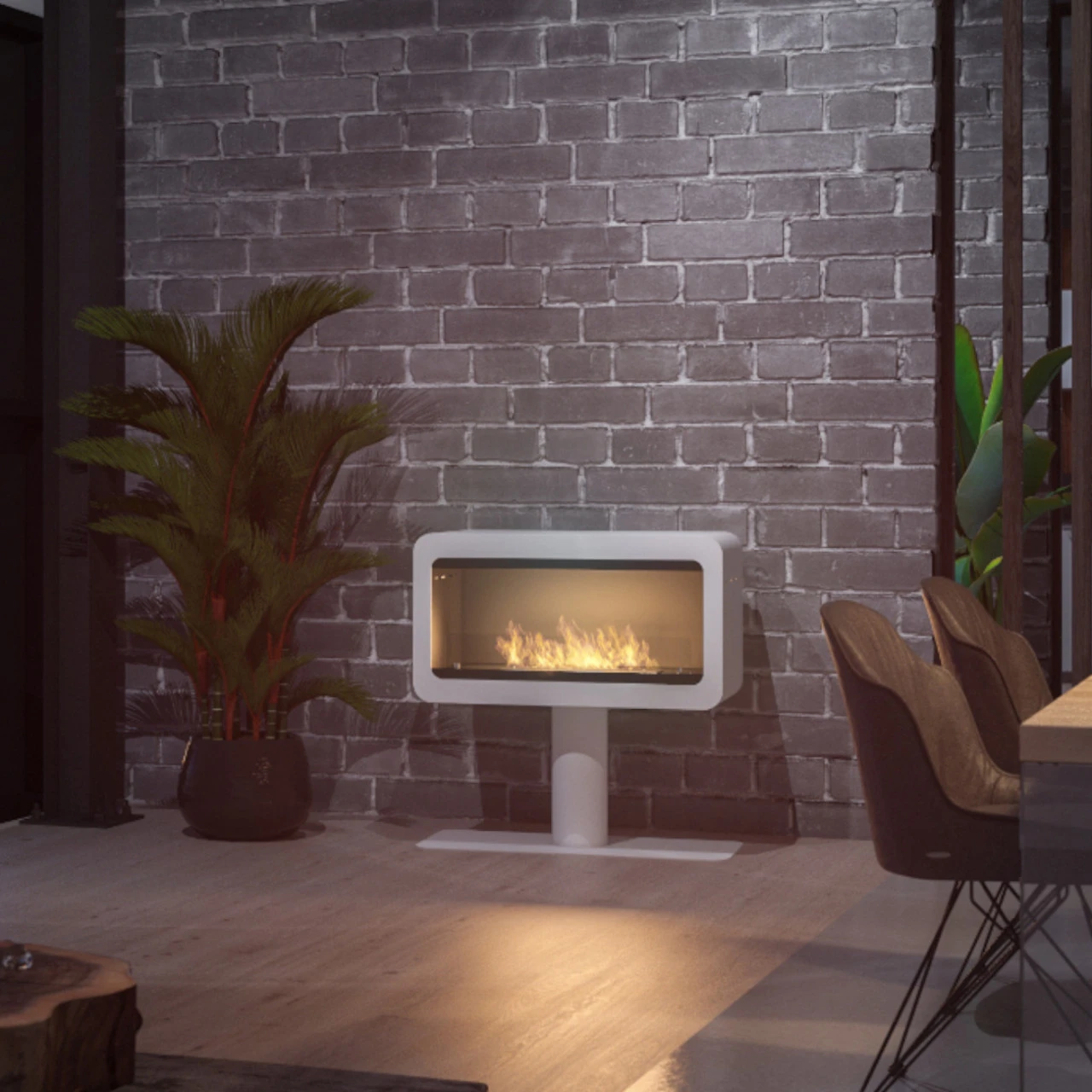 „Das Modell INECCO ist ein moderner, freistehender Kamin. Seine einzigartige Form fügt sich perfekt in den Innenraum ein, sowohl mit klassischem als auch mit modernem Charakter. Dieser Kamin kann auch draußen ein ideales dekoratives Element sein, beispielsweise auf einer Terrasse. Der Kamin ist mit einer eingebauten Isolierung und Lüftungsöffnungen ausgestattet, die die Wärme in den Raum abgeben. Gehärtete Scheibe erhöht die Sicherheit und stabilisiert die Feuerlinie.„