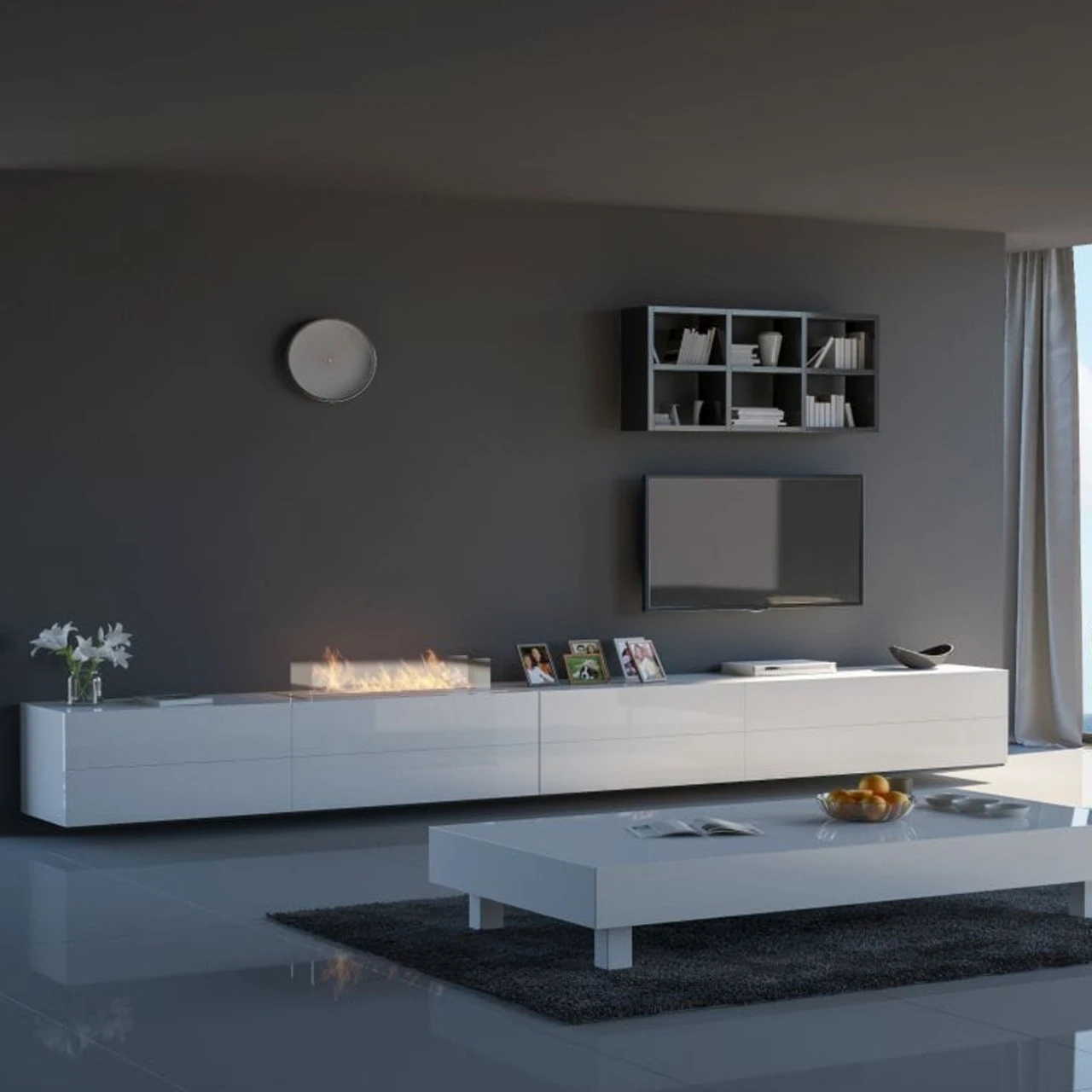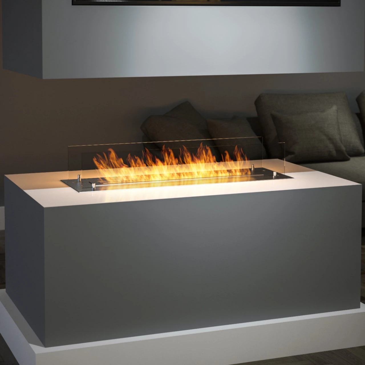 Die 800 mm große Feuerstätte bietet die Möglichkeit, eine lange und effektive Brandlinie in Ihren Innenraum zu integrieren. Ein einfacher Ausschnitt und eine absorbierende Faser, die den Behälter füllt, lassen das Feuer während der gesamten Brennzeit gleichmäßig und stabil brennen. Mit dem Riegel der Feuerstätte können Sie den Kamin jederzeit regulieren und effektiv löschen. Die Feuerstätte ist so konzipiert, dass sie in ein Material eingebettet werden kann, das gegen hohe Temperaturen beständig ist, z. B. Stein, Ziegel. Es besteht jedoch auch die Möglichkeit, die Feuerstätte in einem Material zu montieren, das gegenüber hohen Temperaturen empfindlicher ist, z. B. Möbelplatten.