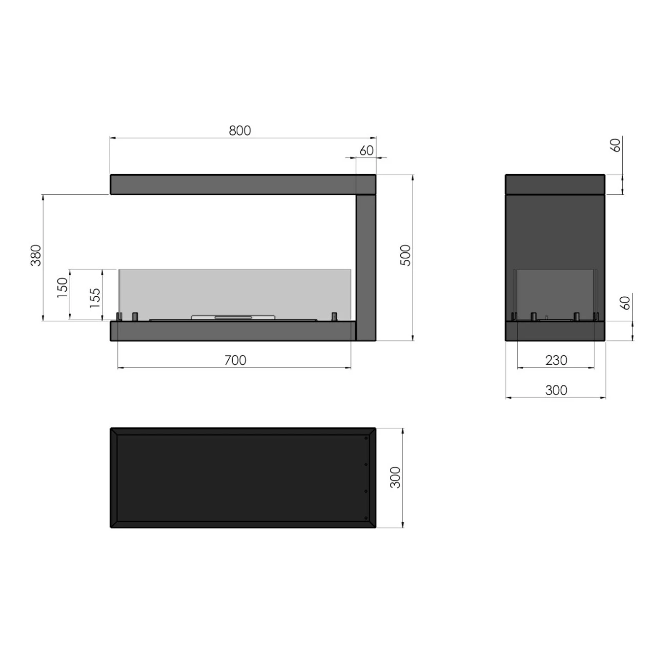 Modell: InFire INSIDE U800 Panorama Ethanolkamin Einbaukassette