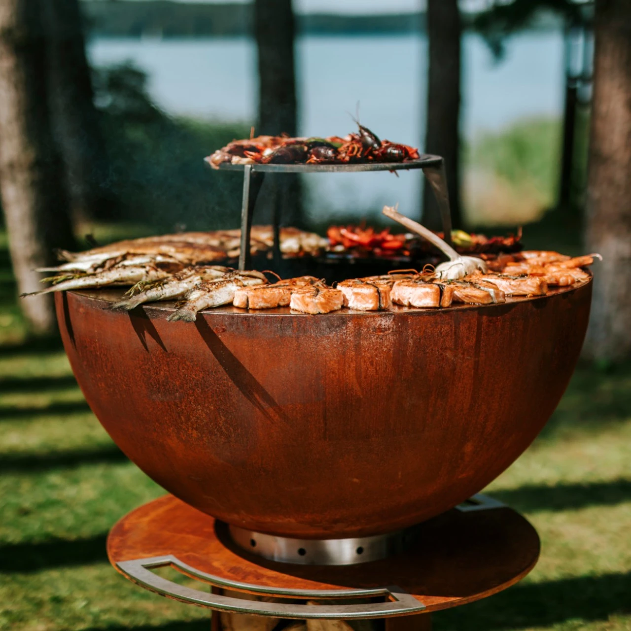 Es gibt Feuerstellen in zwei Größen, sodass sie sich perfekt der Umgebung anpassen. Ihre Konstruktionen sind nicht nur stabil, sondern sie bilden praktisches Design – einfaches Anzünden, Kochen