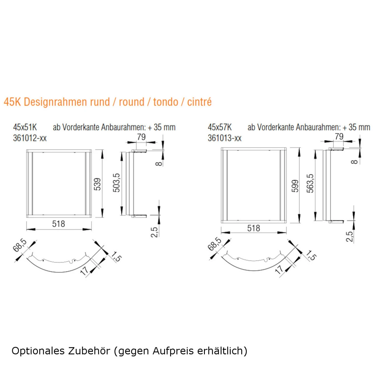 Weitere Maße finden Sie bei den Bildern und im Downloadbereich im Datenblatt (Achtung! Zeichnungen inkl. Konvektionsmantel und Designrahmen)