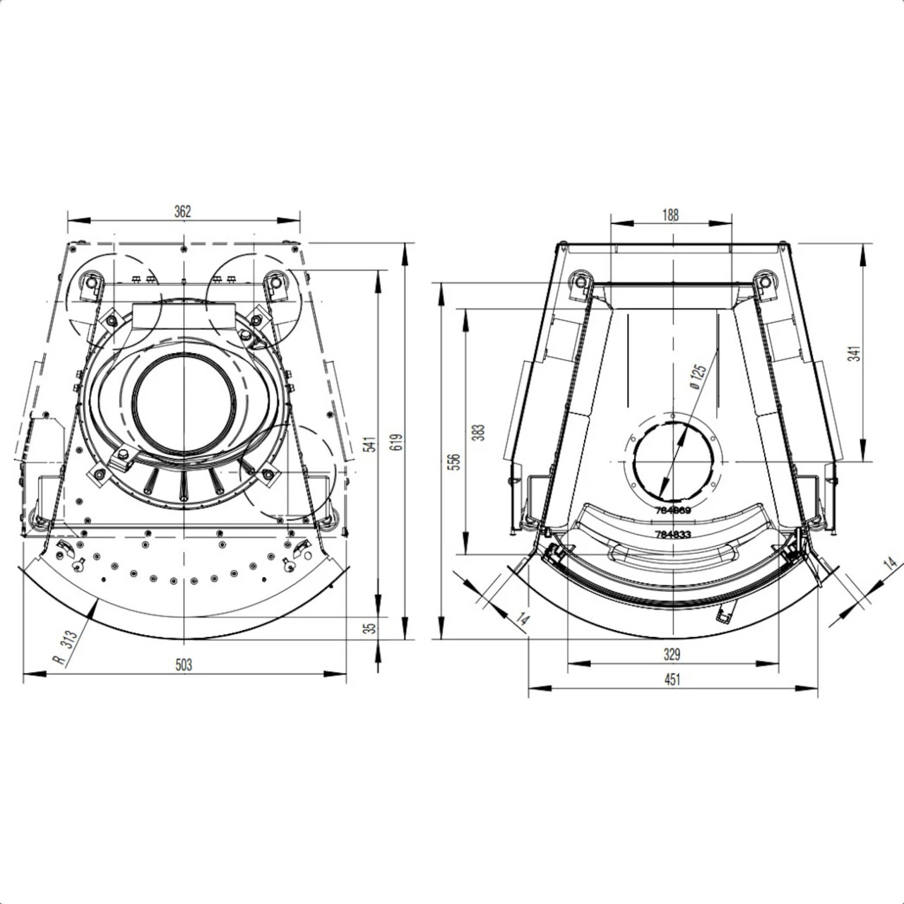 Durchmesser Anschluss Externe Luftzufuhr: 125 mm (123 mm)