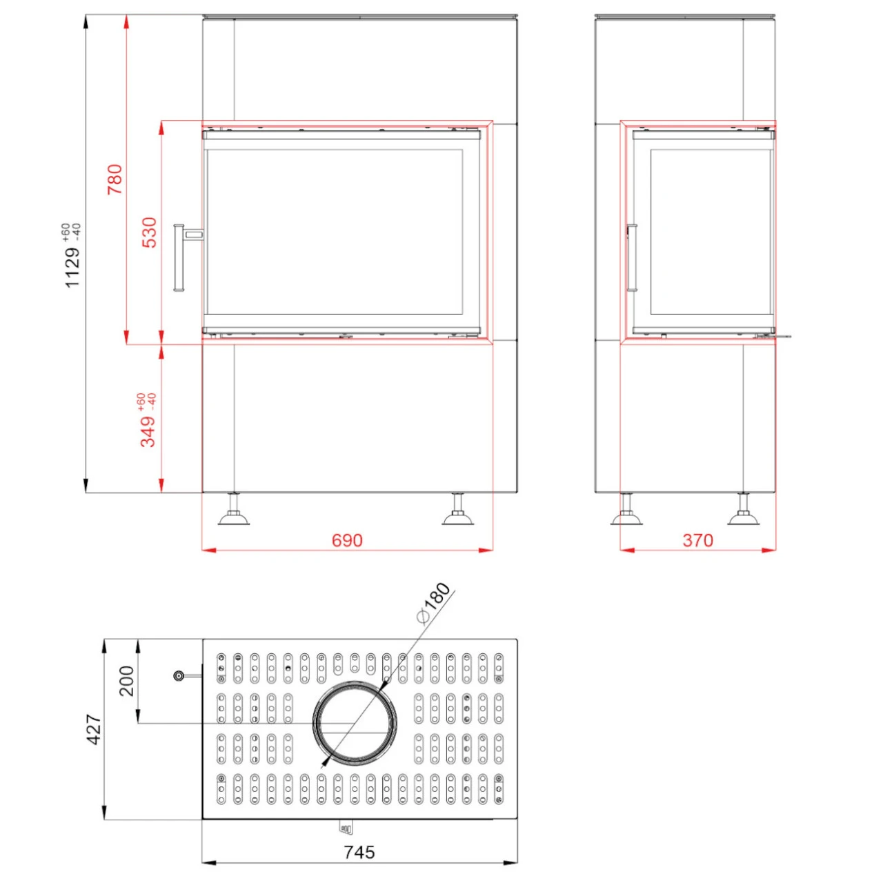 - Besonderheiten Kamin: Anschluss für Externe Luftzufuhr/ Frischluftzufuhr; Höhenverstellbare Füße;