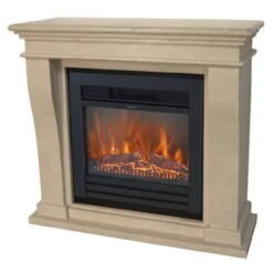 Modell: Kreta Mini Naturstein Weiß LED Kamin mit Lucius LED Kamineinsatz
