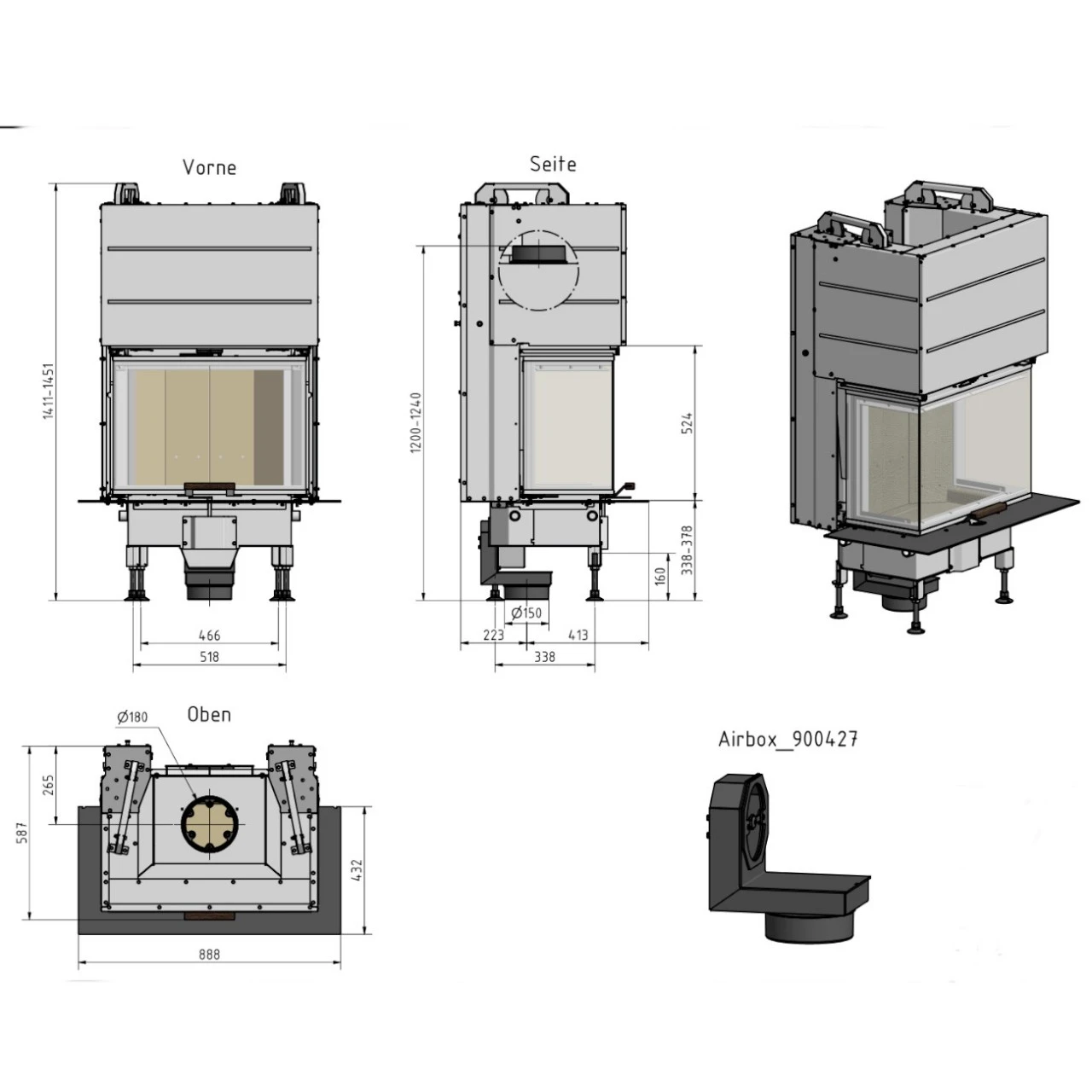 - Durchmesser Anschluss externe Luftzufuhr: 150 mm