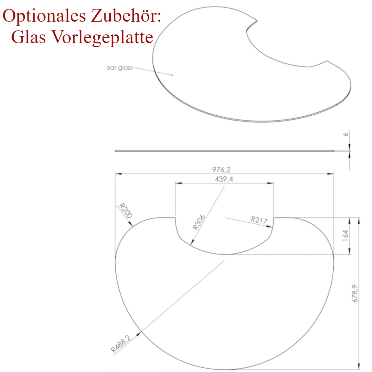 - Passgenaue Glas Vorlegeplatte als optionales Zubehör (gegen Aufpreis erhältlich)