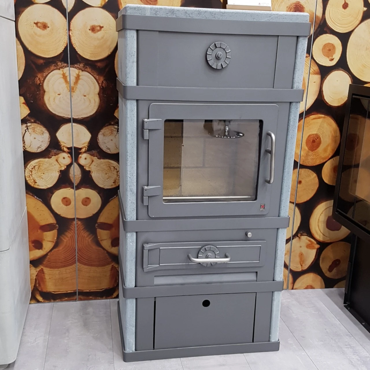 - Brennholzsockel mit Speckstein Verkleidung (Höhe: ca. 25 cm)