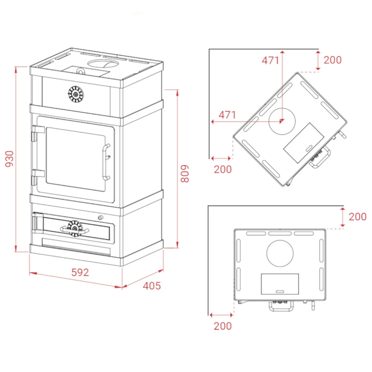 - Brennraum Auskleidung: Schamotte;