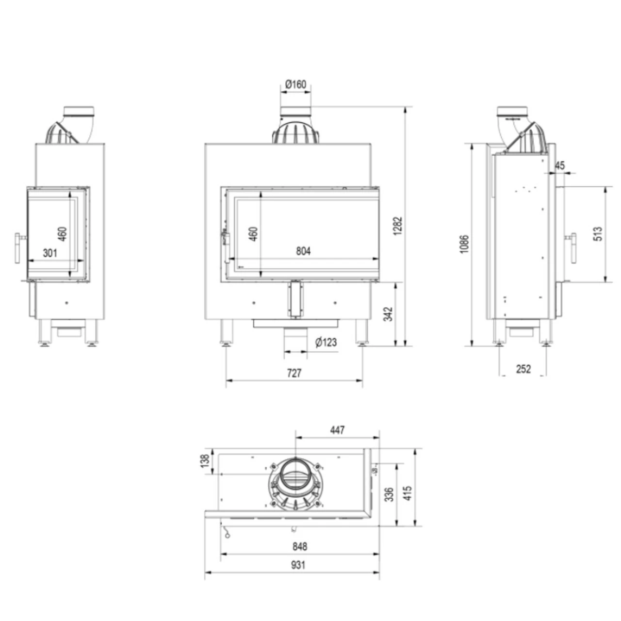- Besonderheiten Kamin: Anschluss für Externe Luftzufuhr/ Frischluftzufuhr; Höhenverstellbare Füße;