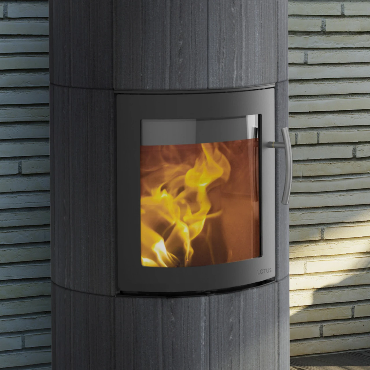 Dieser Lotus Kaminofen ist mit einem Naturstein verkleidet. Jeder einzelne Stein wird von Hand bearbeitet und poliert, Farbunterschiede und eine ungleiche Oberflächenstruktur machen diesen Ofen für sie zu einem Unikat. Leichte Farbunterschiede oder Einschlüsse in der Oberfläche die wie Flecken aussehen sind genauso normal und gewollt wie kleinere Maßtoleranzen.