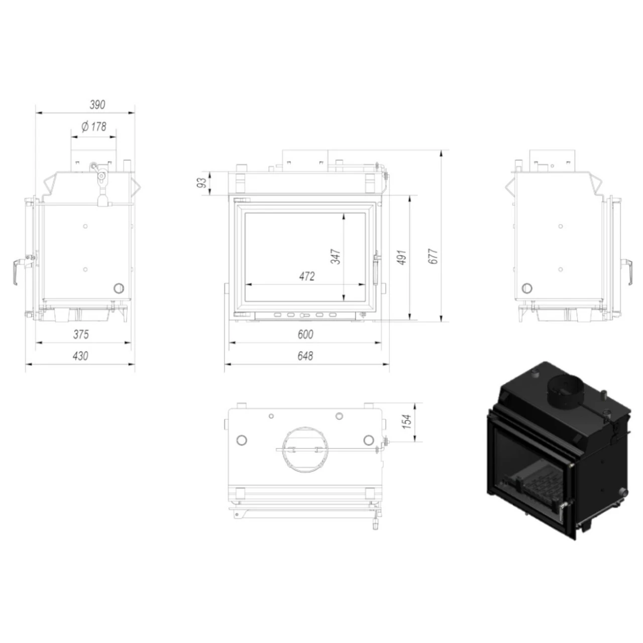Die klassische Vorderseite des Einsatzes ist mit hitzebeständiger Keramikglas ausgestattet, die Temperaturen bis zu 660°C standhält.