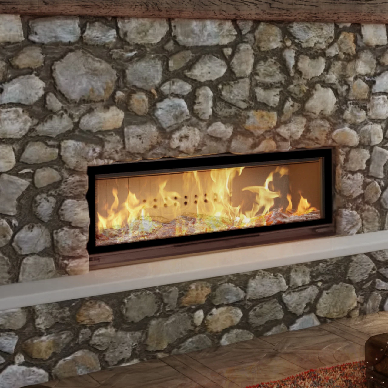 Der Kaminkorpus und die Vorderseite bestehen aus 4 mm dicken Stahlblechen und ermöglichen somit den Betrieb bei hohen Temperaturen