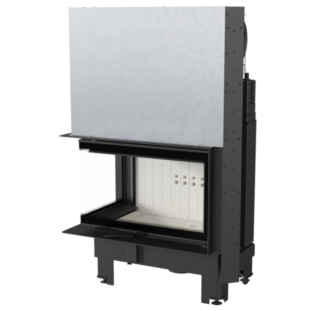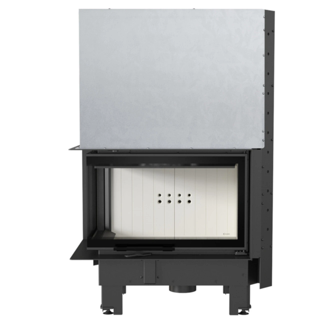 Modell: Kratki MBM 10 Warmluft-Eckkamineinsatz Links Verglast mit Hebetür – Die Hebetür lässt sich zum Reinigen auch anders öffnen.