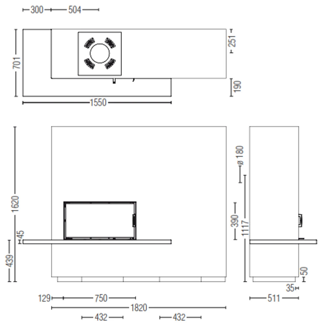 Durchmesser Rauchrohr-Anschluss: 180 mm